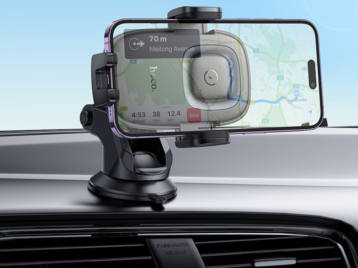 Deze Hoco telefoonhouder is uitgerust met een zuignap voor op uw dashboard of aan de voorruit. De montage is heel eenvoudig en verrassend stabiel. Plaats de houder op een vlakke ondergrond, druk hem vast en vergrendel met het kleine hendeltje. De houder zit direct stevig vast op zijn plek! Desgewenst kan de houder ook snel losgemaakt worden door het hendeltje los te klikken en aan het lipje van de zuignap te trekken.