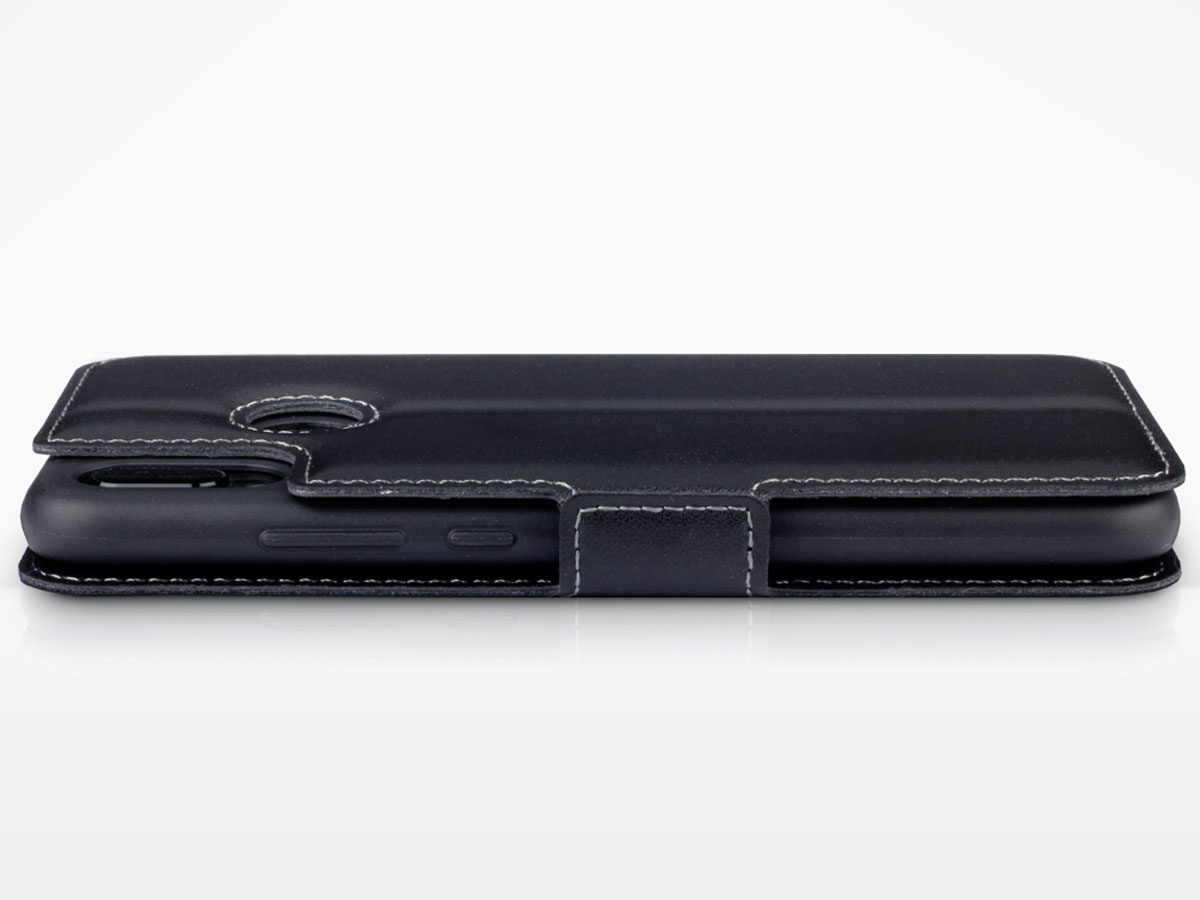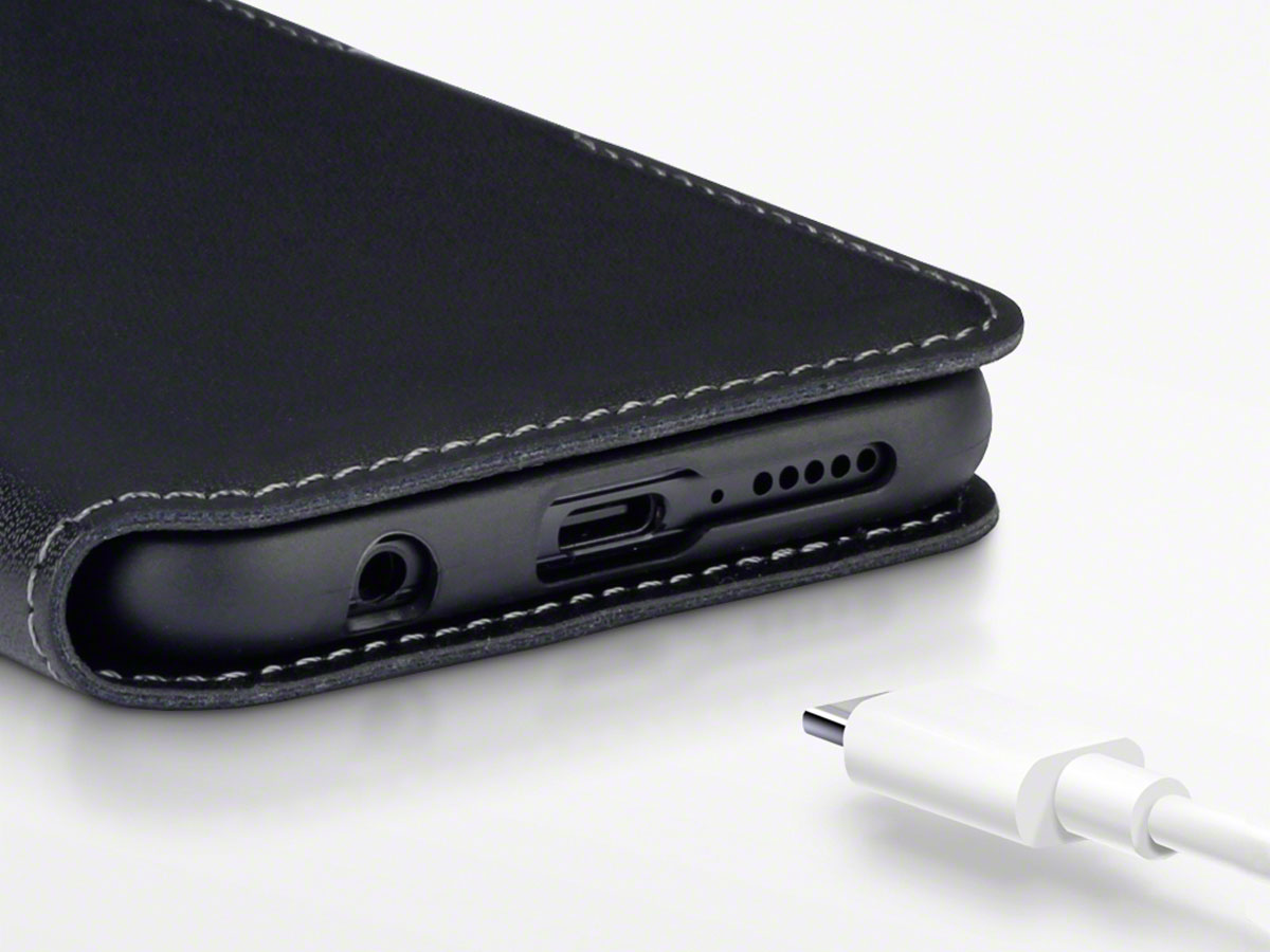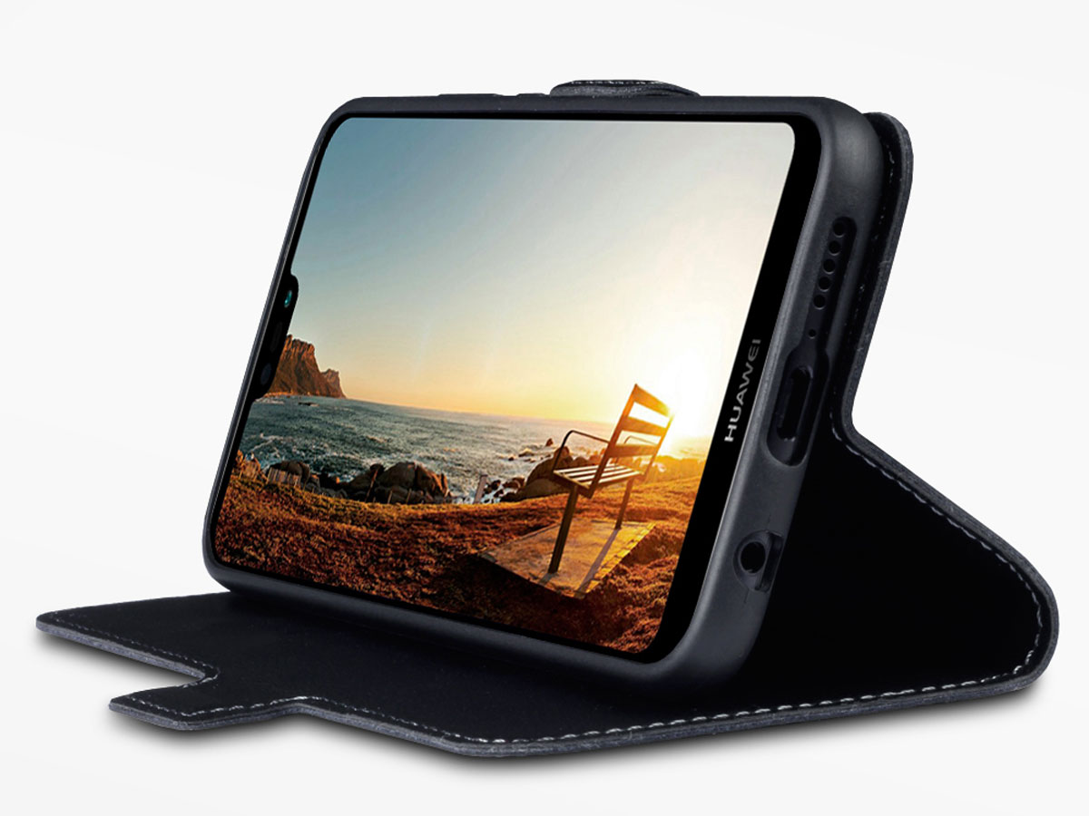 Met dit hoogwaardige leren Huawei P20 Lite hoesje biedt u uw toestel bescherming in stijl. De case is gemaakt van echt leer, uitgevoerd in representatief zwart met contrasterende stiksels.