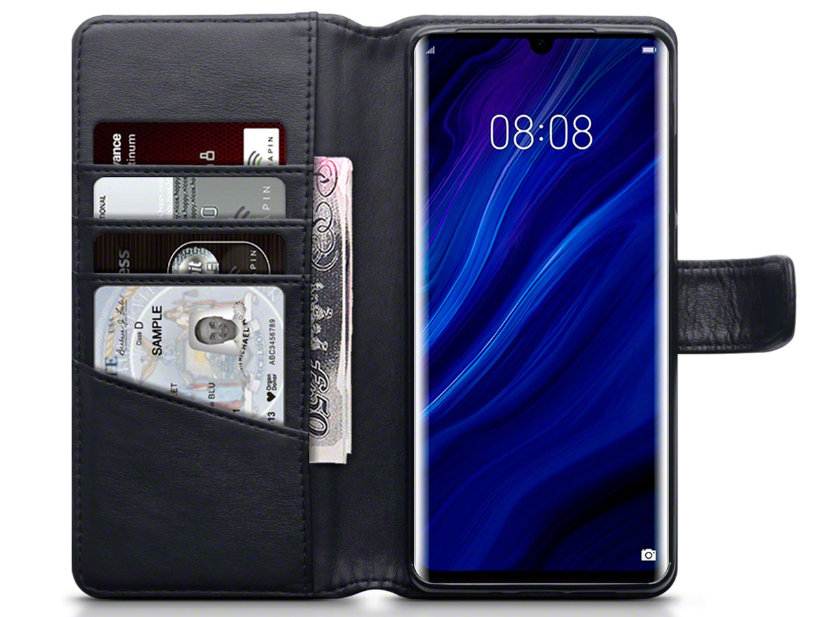 CaseBoutique Leather Wallet Zwart Leer - Huawei P30 Pro hoesje