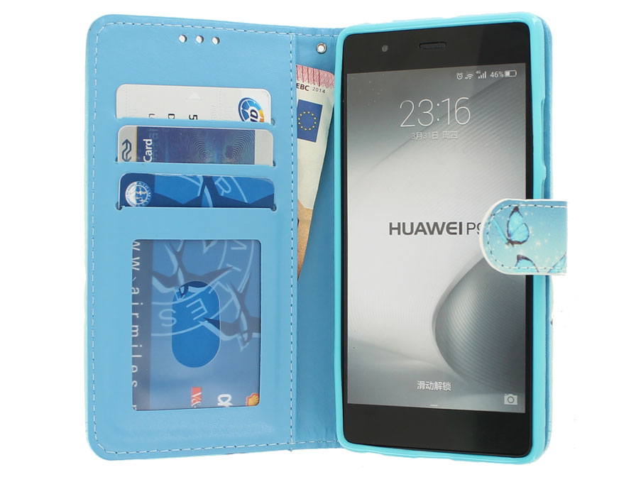 Blue Butterflies Bookcase - Huawei P9 Hoesje