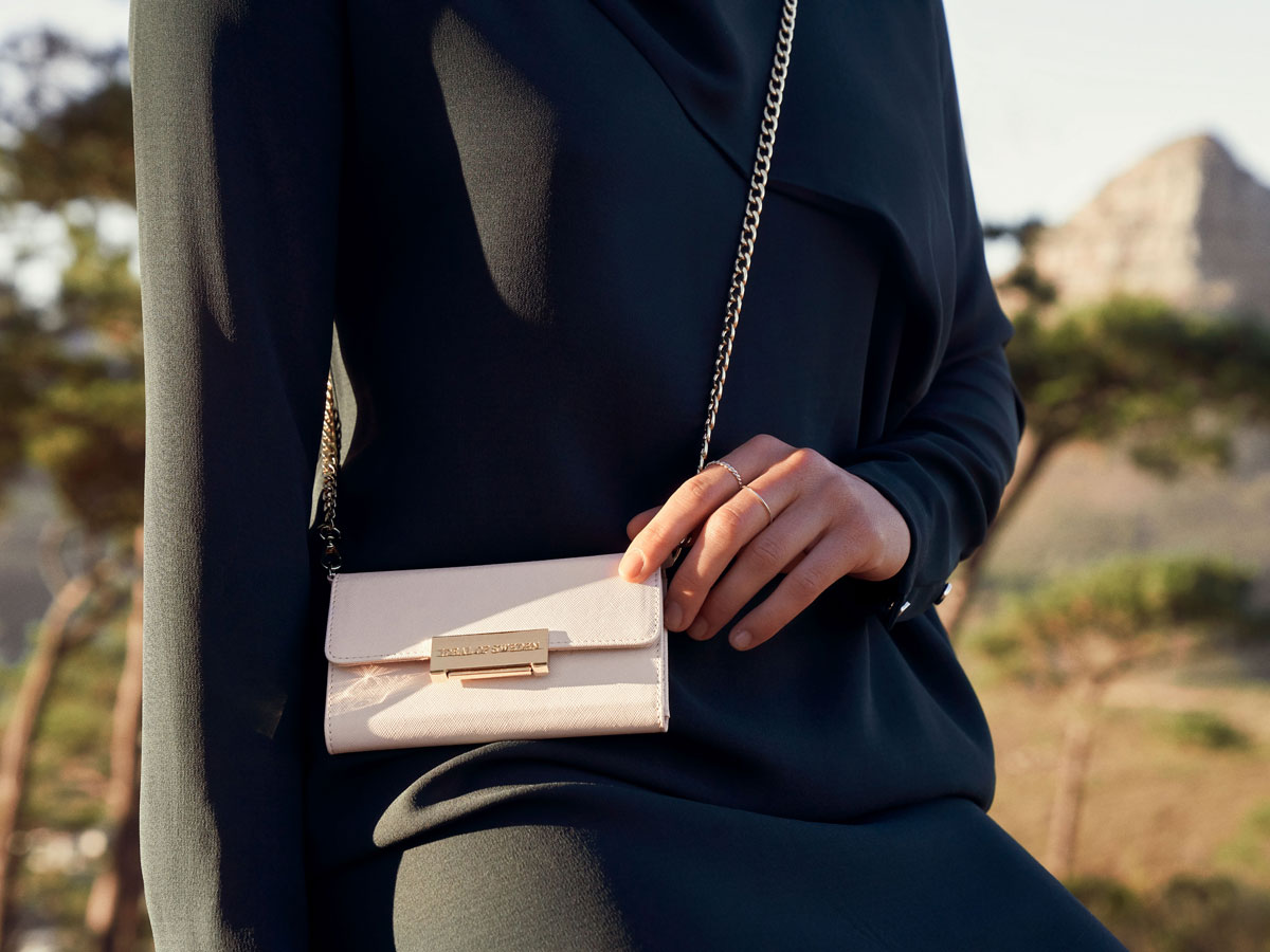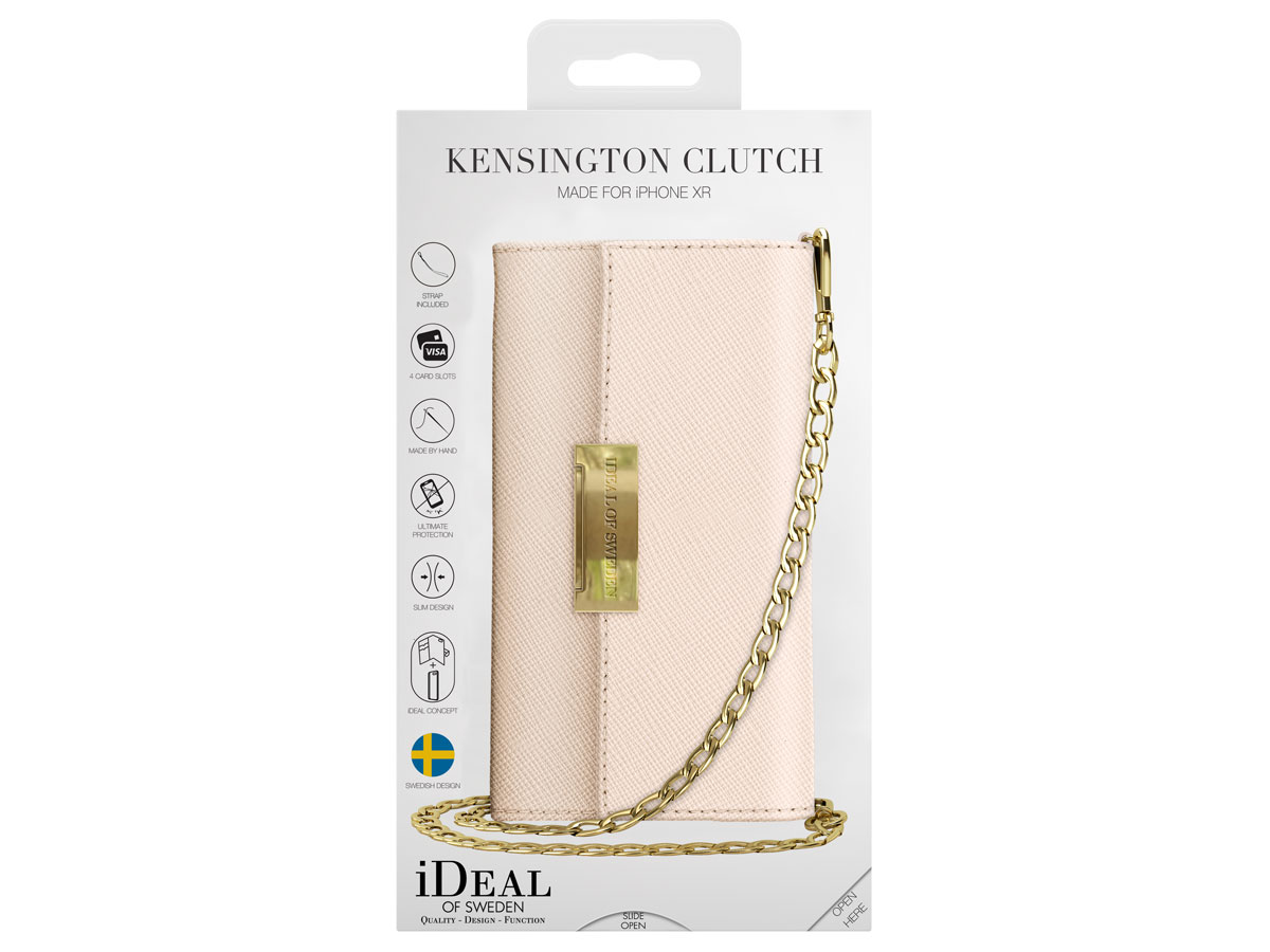 Deze prachtige iDeal of Sweden Kensington Clutch case is speciaal voor de iPhone XR ontworpen. De case is uitgevoerd in een stijlvolle saffiano look en voorzien van een goudkleurige sluiting. De Kensington case wordt bovendien geleverd met een metalen ketting zodat hij over de schouder gedragen kan worden.