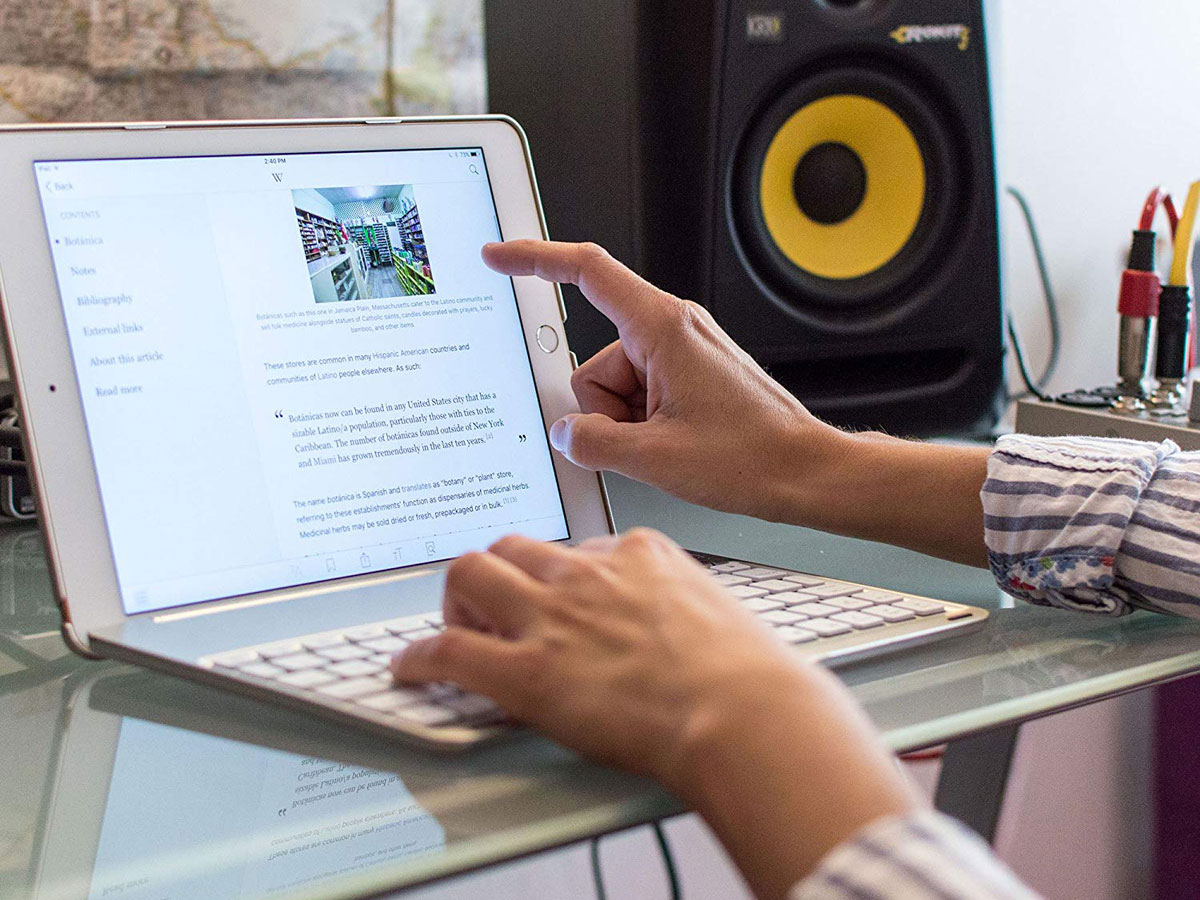 Het QWERTY toetsenbord in de keyboard case heeft kunststof scissor-toetsen, net als de toetsen die u gewend bent van uw computer of laptop. Het toetsenbord is full-size zodat u al snel op volle snelheid zal kunnen werken. Het toetsenbord koppelt eenvoudig via Bluetooth 4.0 met uw iPad 10.2 2019/2020/2021, iets dat na de eerste keer bovendien automatisch gebeurt. Dankzij de instelbare toetsenbordverlichting is werken in het donker kinderspel. U heeft hierbij de keuze uit 7 kleuren verlichting en 10 helderheidsniveaus.