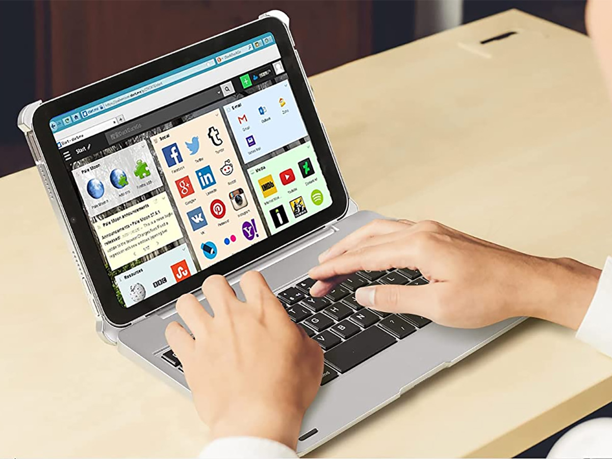 De toetsenbord hoes heeft een fraaie vormgeving die de iPad Mini 6/7 in een soort mini-laptopje verandert. De case beschikt over eenzelfde soort scharnier onderaan het scherm en laat zich traploos in kijkhoek variëren. De maximale hoek waarin de keyboard case geopend kan worden is 135 graden. Bovendien gaan zowel de iPad als het toetsenbord. automatisch aan zodra u de case open klapt en weer uit als u deze dicht klapt: handig!