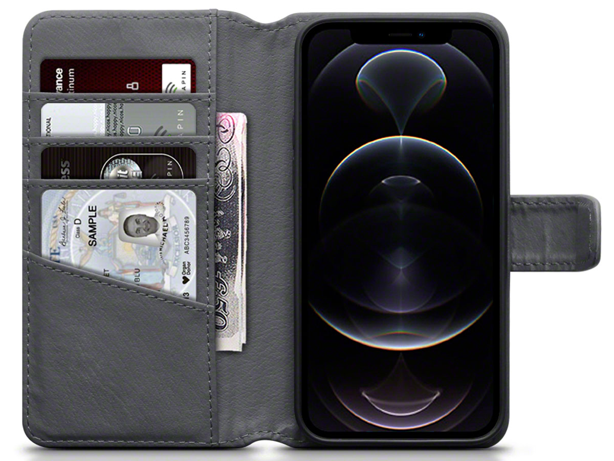 CaseBoutique Leather Wallet Grijs Leer - iPhone 12/12 Pro hoesje