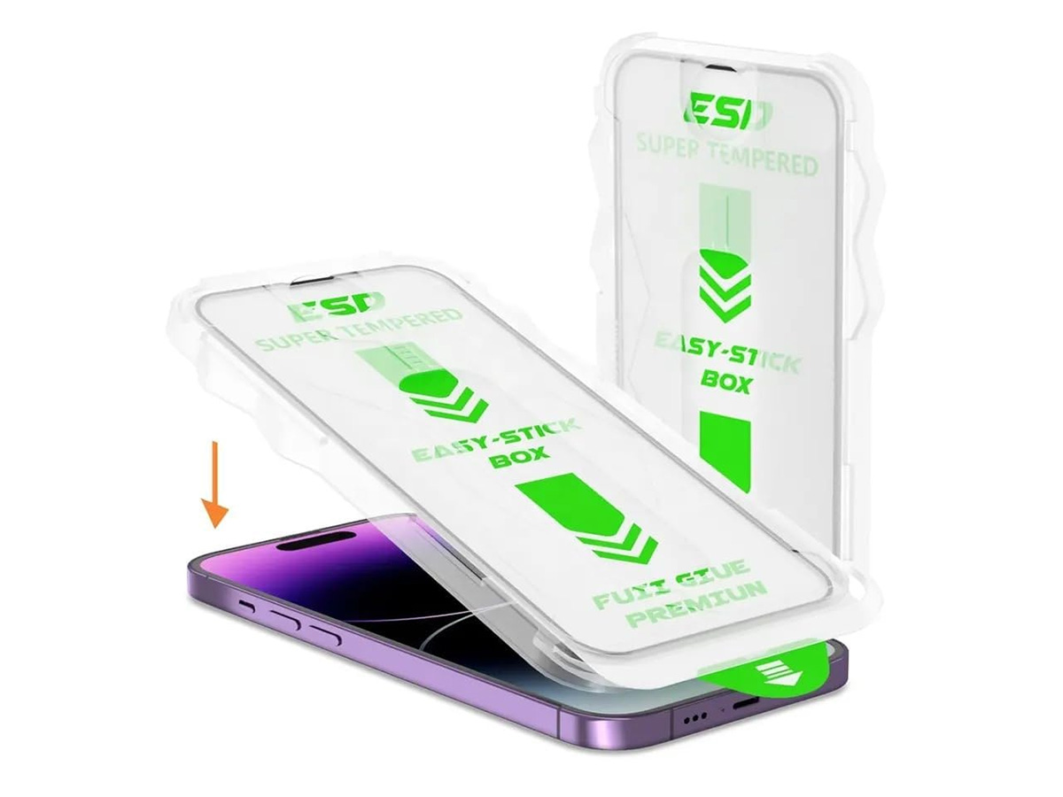 Deze iPhone 16 Pro Max screenprotector wordt geleverd met een super eenvoudig te gebruiken applicator. Deze zorgt ervoor dat u de protector gegarandeerd perfect aanbrengt: perfect recht, perfect uitgelijnd én volledig stofvrij...zélfs als er stof of zelfs zand op uw scherm zou liggen! Het werkt in 3 stappen: