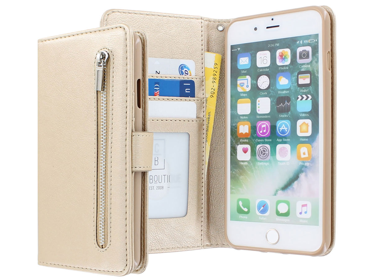 Zip Wallet Case Goud - iPhone 8+/7+/6+ hoesje