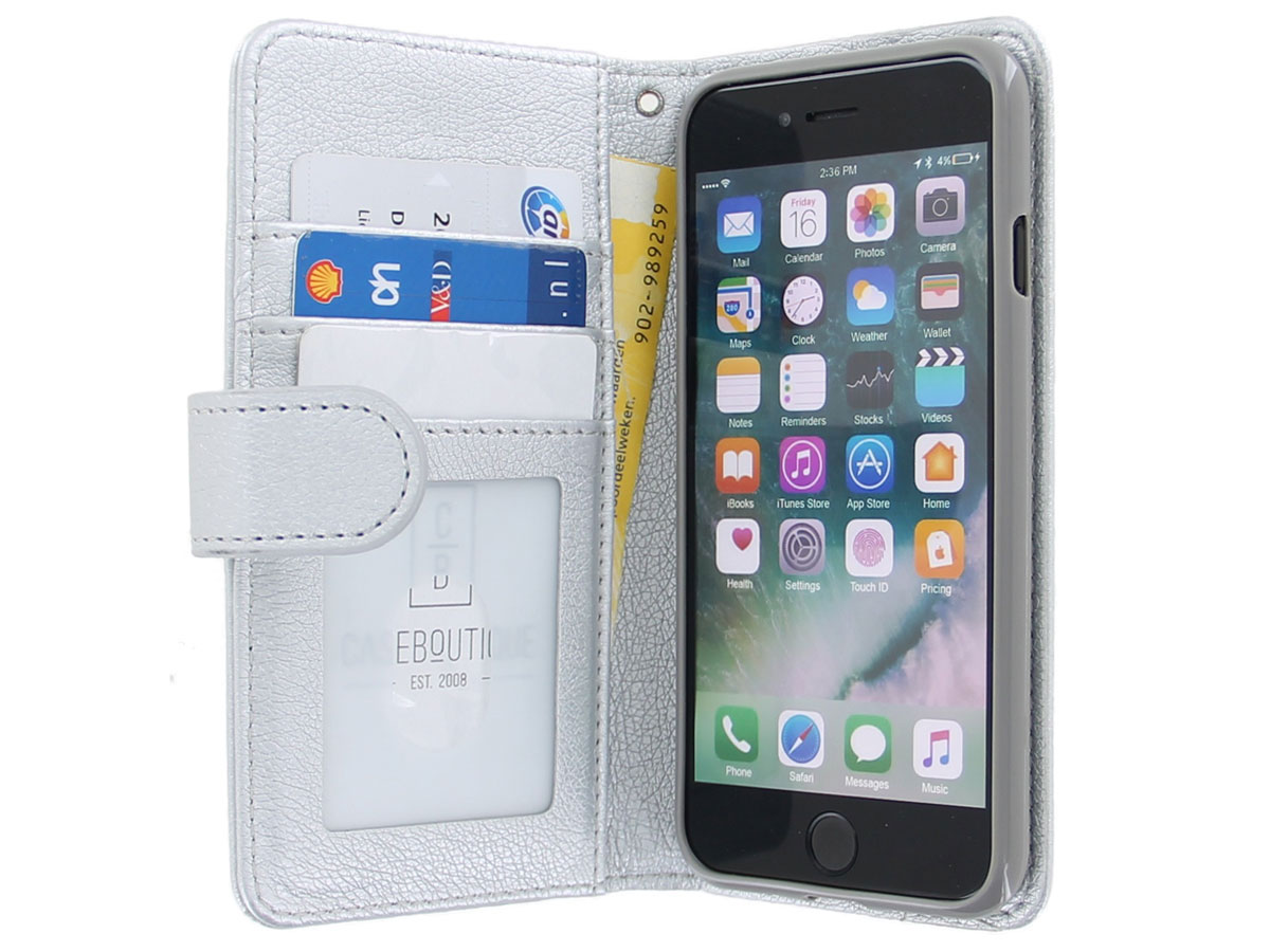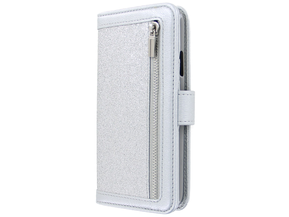 Glitsie Zip Case met Rits Zilver - iPhone SE / 8 / 7 hoesje