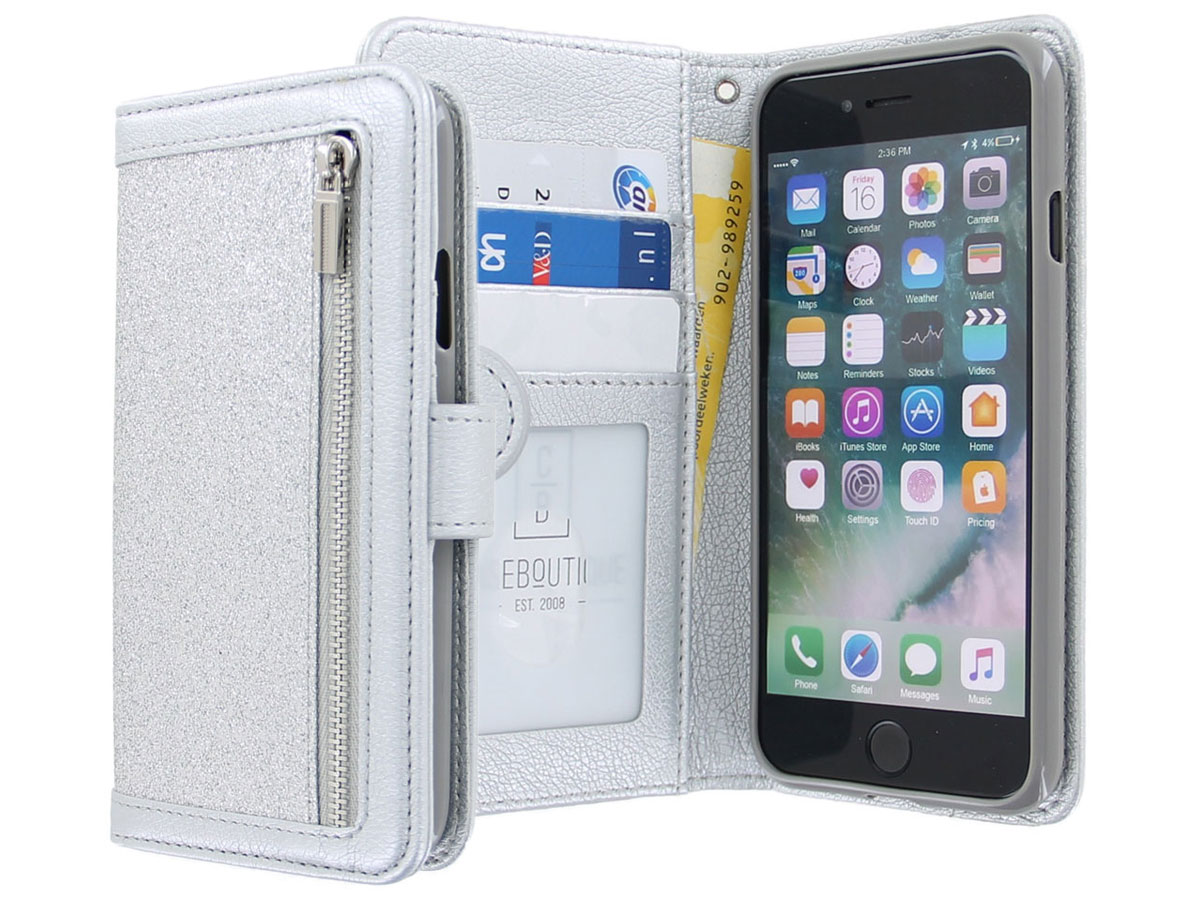 Glitsie Zip Case met Rits Zilver - iPhone 8+/7+ hoesje