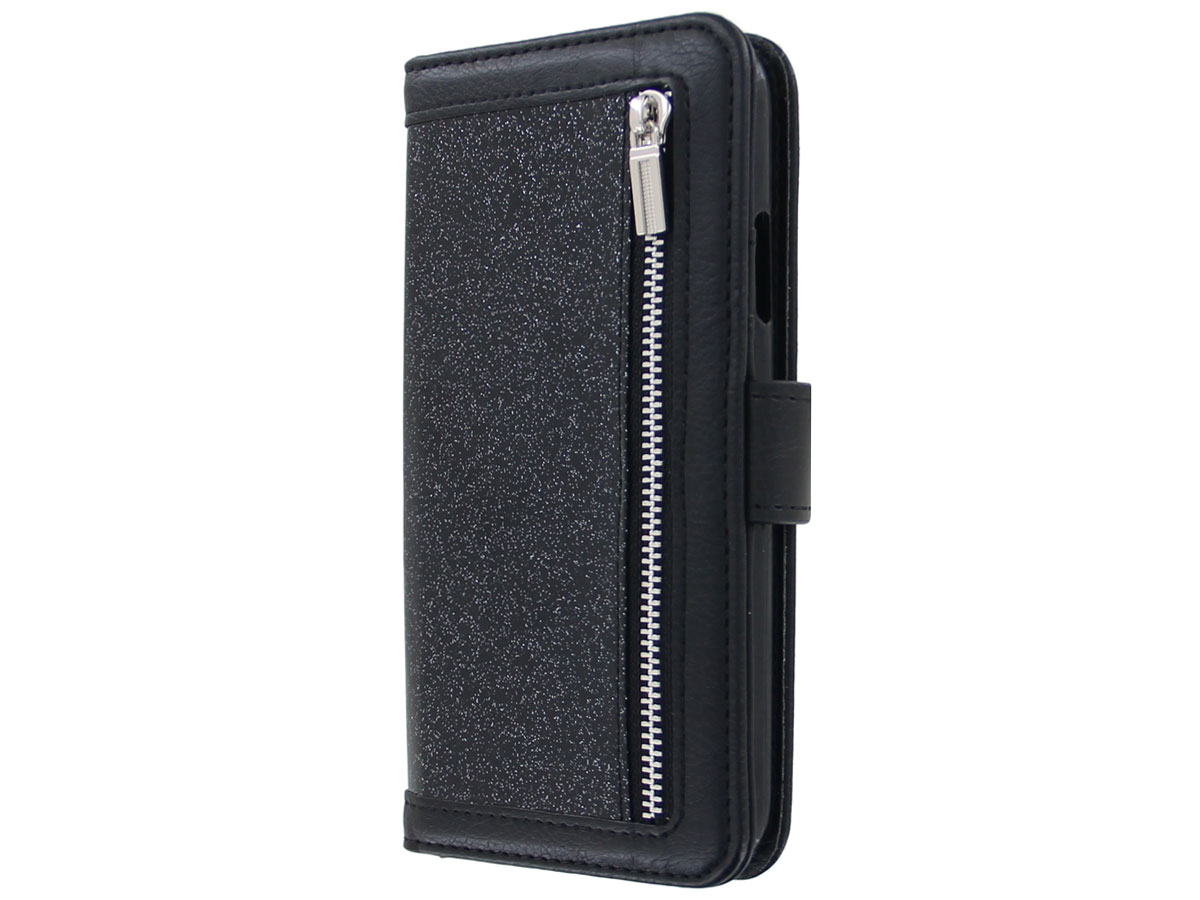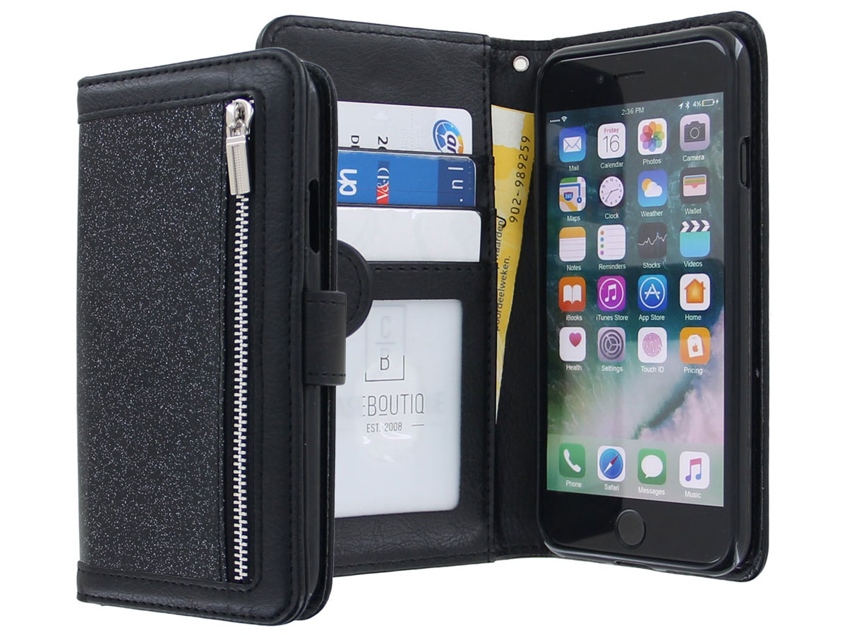 Glitsie Zip Case met Rits Zwart - iPhone 8+/7+ hoesje