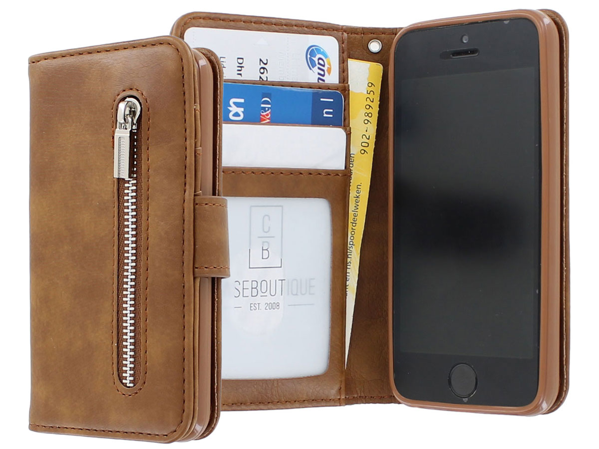 Zipper Wallet Case Bruin - iPhone SE / 5s / 5 hoesje