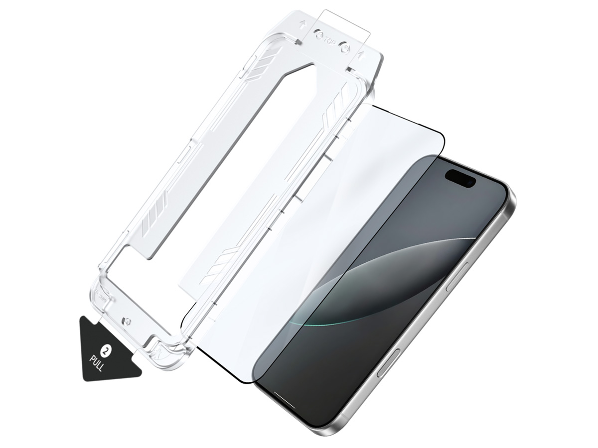 Deze iPhone 17 screen protector is speciaal voor dit toestel ontworpen en past dan ook perfect. De protector bedekt daarbij het volledige glasoppervlak van het scherm. De zwarte rand op de glas protector zorgt ervoor dat deze vrijwel onzichtbaar op het scherm zit.