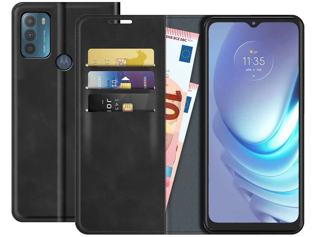 De Motorola Moto G50 case beschikt over 3 vakjes voor pasjes en een steekvakje voor briefgeld en bonnetjes in de voering van het klepje. Daarnaast kan het telefoonhoesje ook als standaardje gebruikt worden, zodat u de Motorola Moto G50 in een handomdraai rechtop kunt zetten.