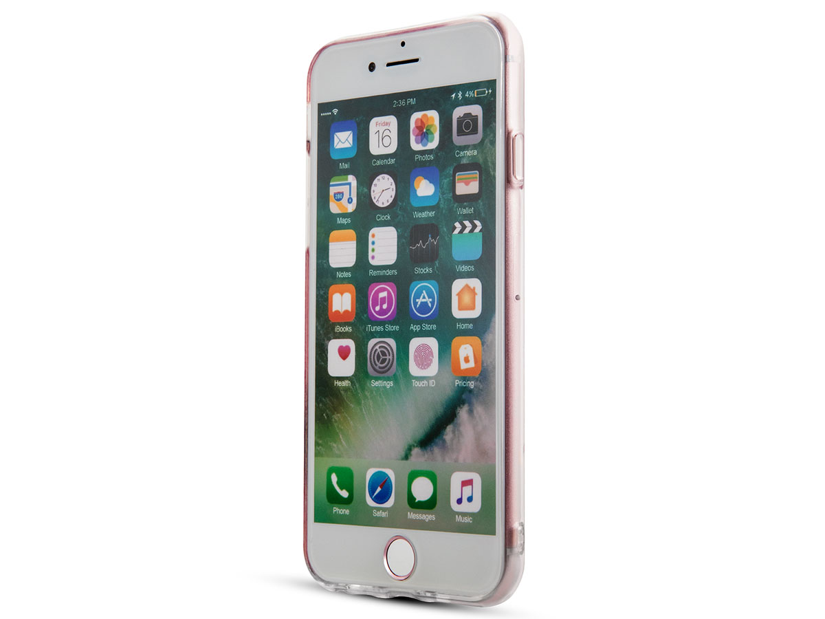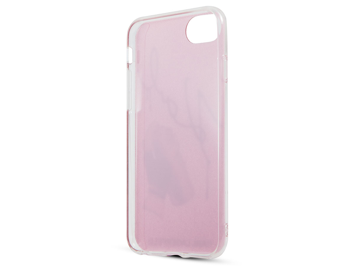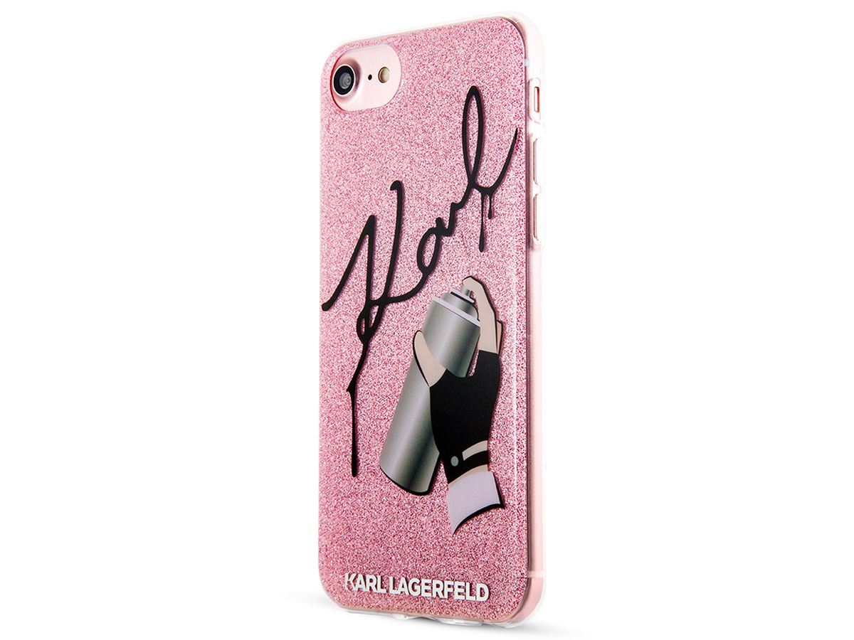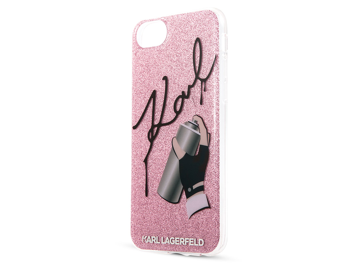Dit originele Karl Lagerfeld iPhone hoesje is geschikt voor zowel de iPhone 8 als de iPhone 7 en iPhone 6/6s. De case is uitgevoerd in roze glitters, met een leuk Karl design. De glitters zitten hierbij ín het materiaal, zodat het hoesje gewoon glad aanvoelt en de glitters niet afgeven of slijten.
