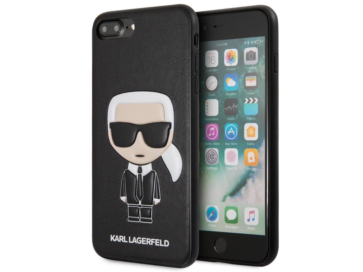 Dit Karl Lagerfeld hoesje voor de iPhone 8 Plus, 7 Plus én iPhone 6/6s Plus is uitgevoerd in de voor Karl kenmerkende kleur zwart. Zijn eigen cartoon-alterego staat samen met het Karl Lagerfeld logo achterop. Daarbij is de print ook voelbaar in 3D in het leer gedrukt!