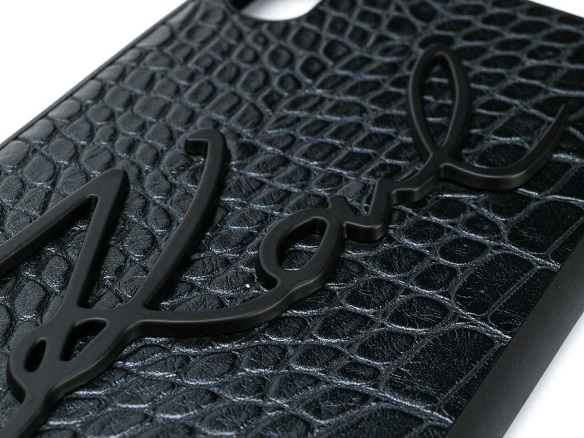 Deze originele Karl Lagerfeld iPhone case heeft een waanzinnig design. De case is uitgevoerd in een zwarte croco-look waarop een metalen Karl Signature is aangebracht. Met deze case wordt je iPhone Xs Max een ware eye-catcher.