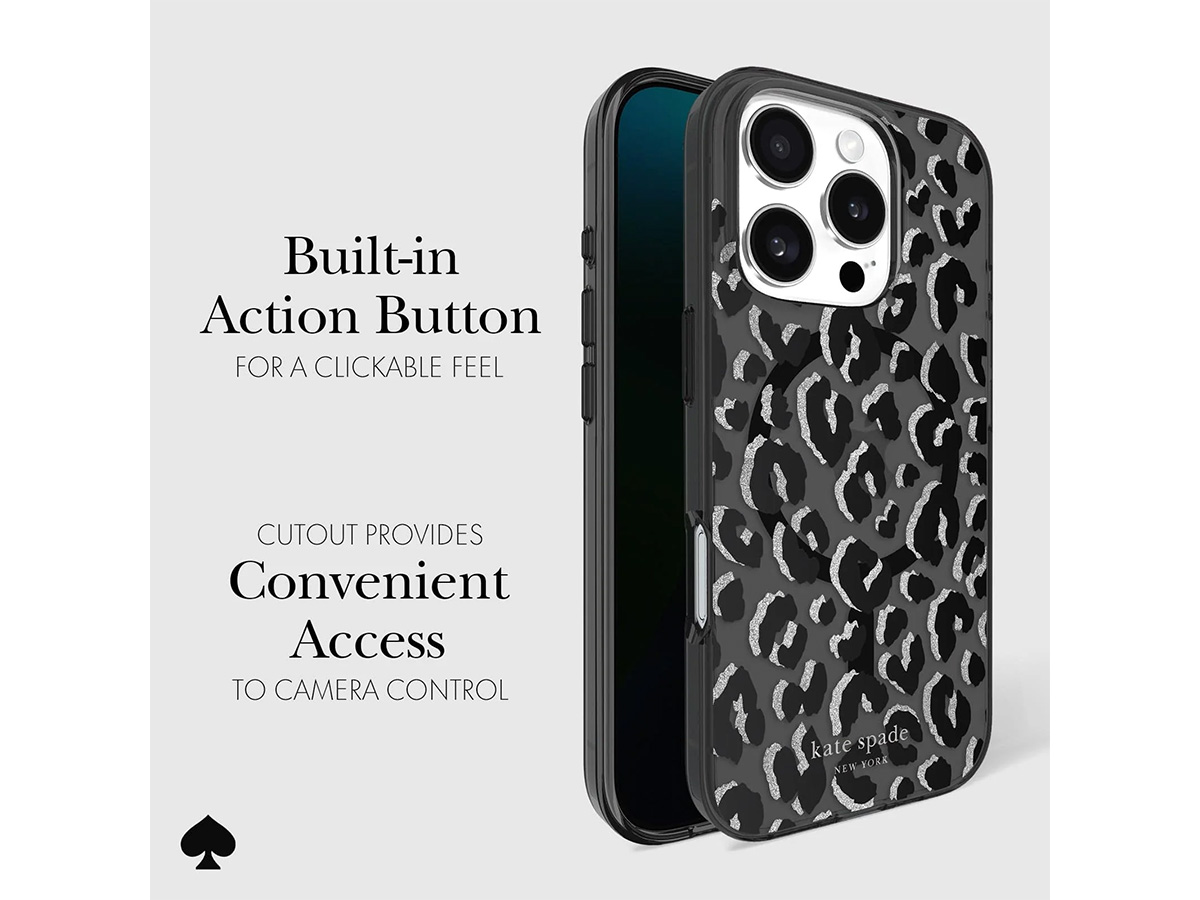 Kate Spade Black City Leopard Case - iPhone 16 Pro hoesje