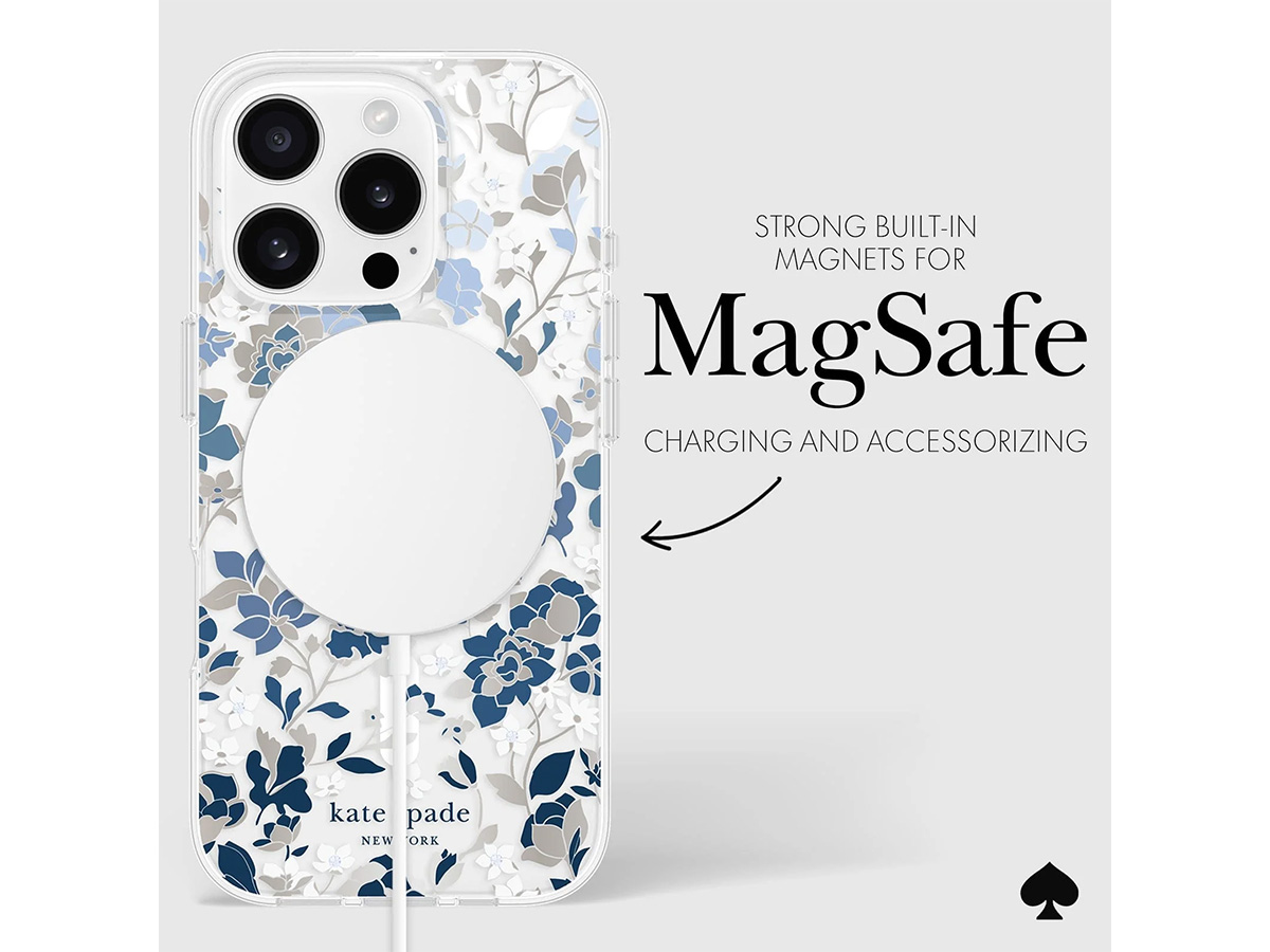 Het Kate Spade iPhone 16 Pro hoesje is volledig compatible met MagSafe. De case is voorzien van de benodigde magnetische ring om MagSafe accessoires zoals opladers, wallets, stands en (auto)houders stevig vast te laten klikken.