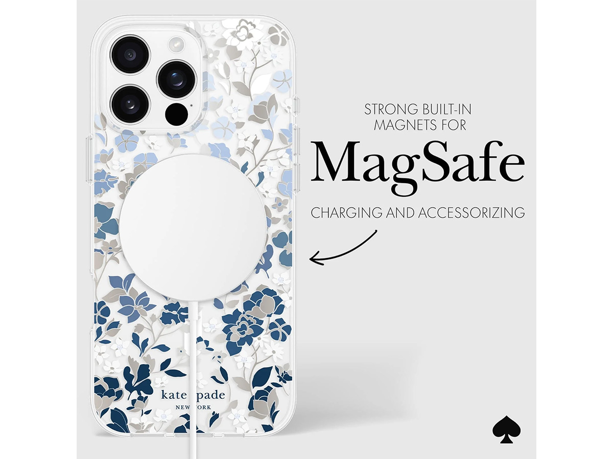 Het Kate Spade iPhone 16 Pro Max hoesje is volledig compatible met MagSafe. De case is voorzien van de benodigde magnetische ring om MagSafe accessoires zoals opladers, wallets, stands en (auto)houders stevig vast te laten klikken.
