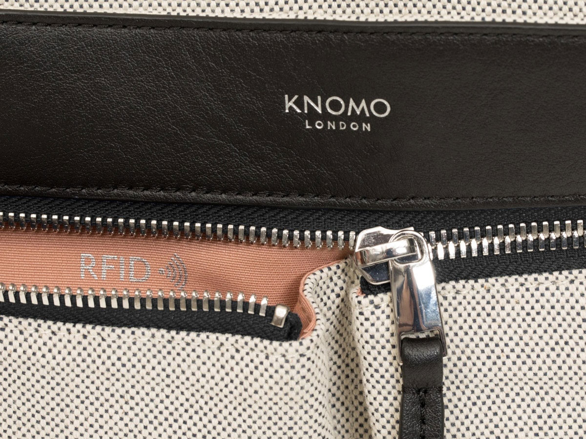 Het hoofdcompartiment van de Knomo Curzon is verder ruim genoeg om al je dagelijkse benodigdheden in op te bergen. Voorop de tas zitten twee ritsvakjes voor spullen waar je snel bij moet kunnen. Dit vak heeft bovendien een RFID lining om skimming van je paspoort of bankpassen te voorkomen. Tot slot heeft de tas ook nog een vrijwel onzichtbaar steekvak voorop.
