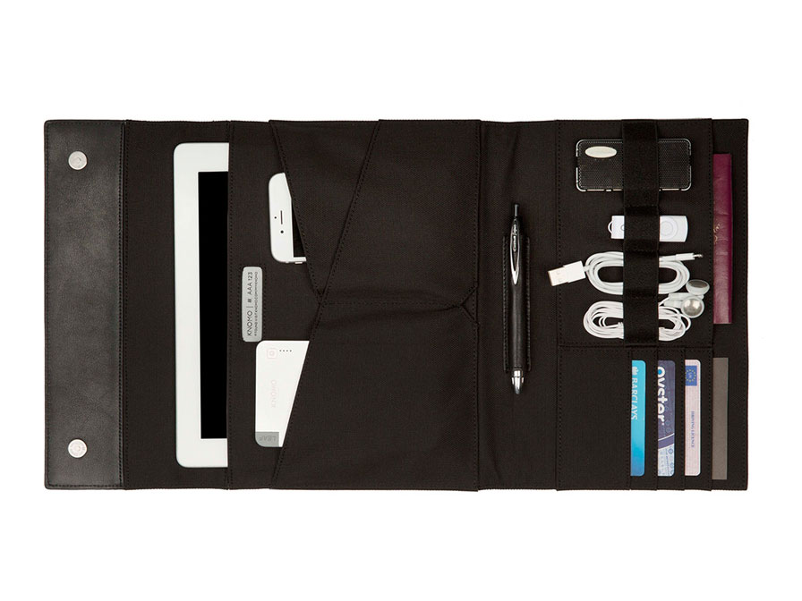 De innovatieve Knomo Knomad Air is een prachtige lederen organiser voor al je tech en reis essentials. Met plek voor een 10" tablet, smartphone, kabeltjes, powerbank, paspoort, pasjes en andere zaken is het de ideale partner voor "life-on-the-go". Alles wat je nodig hebt gedurende dag compact bij elkaar.