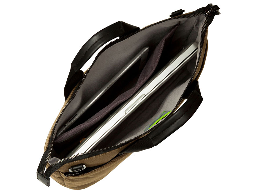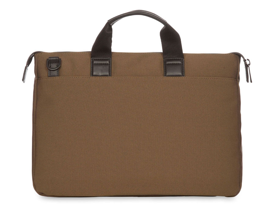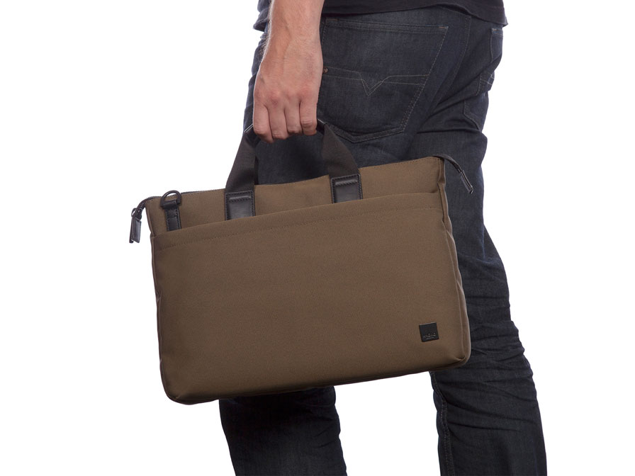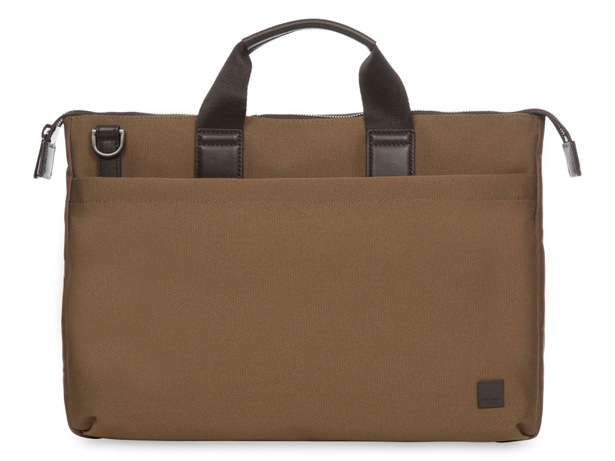 De Oxberry laptoptas is geschikt voor laptops tot 15 inch groot. Middels een stevige ritssluiting krijgt u toegang tot het centrale vak, waarin ook een tablet-vak te vinden is. De tas is flexibel van vorm zodat er indien nodig zoveel mogelijk ingestopt kan worden. Voorop de tas zit een tweede vak waarin een handige organizer voor kleine spullen zoals kabeltjes, te vinden is, geïnspireerd op de Knomo Knomad lijn. Tot slot zit ook achterop de laptoptas nog een steekvak voor documenten.