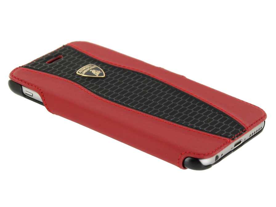 Dit schitterende iPhone 6/6S hoesje is een officiële uitgave van Lamborghini. Het hoesje is geheel uitgevoerd in Lamborghini stijl, met een fraai metalen Lamborghini logo voorop. Het hoesje is zoals u van dit merk mag verwachten van hoogwaardige materialen gemaakt, zoals echt leder en microfiber.