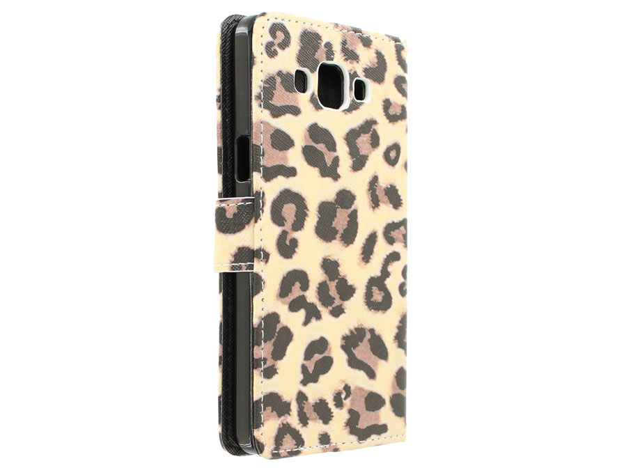 Dit Samsung Galaxy A5 2015 hoesje is speciaal ontworpen voor deze Samsung smartphone met typenummer SM-A500. De book-case is gemaakt van kunstleer en voorzien van een hippe luipaard print.