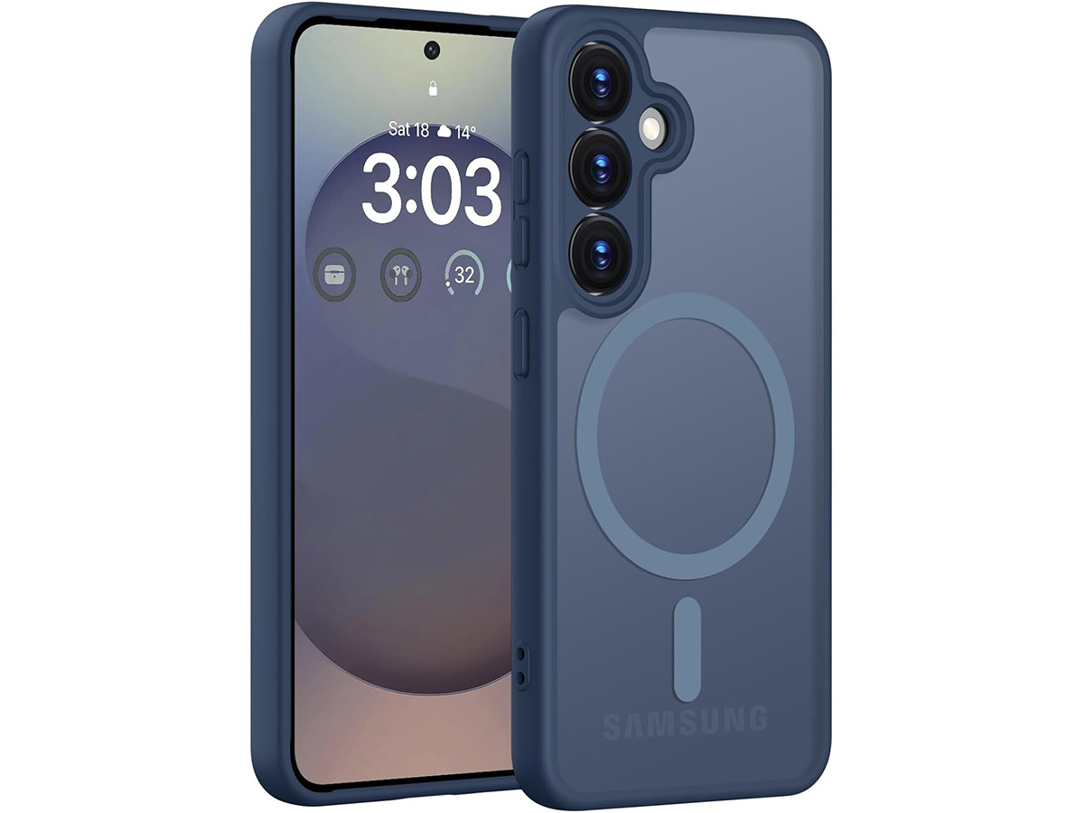CaseMania Lens Protection Samsung Galaxy S26+ Hoesje Frosted MagSafe Case Blauw