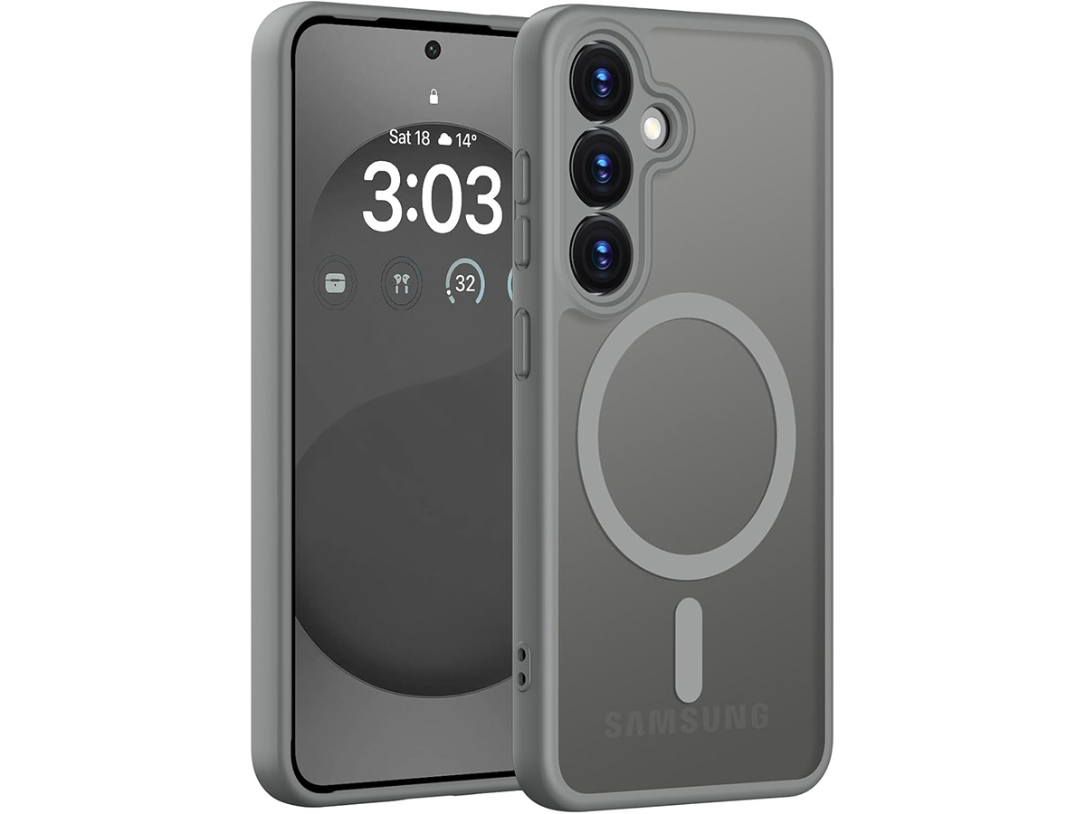CaseMania Lens Protection Samsung Galaxy S26+ Hoesje Frosted MagSafe Case Grijs