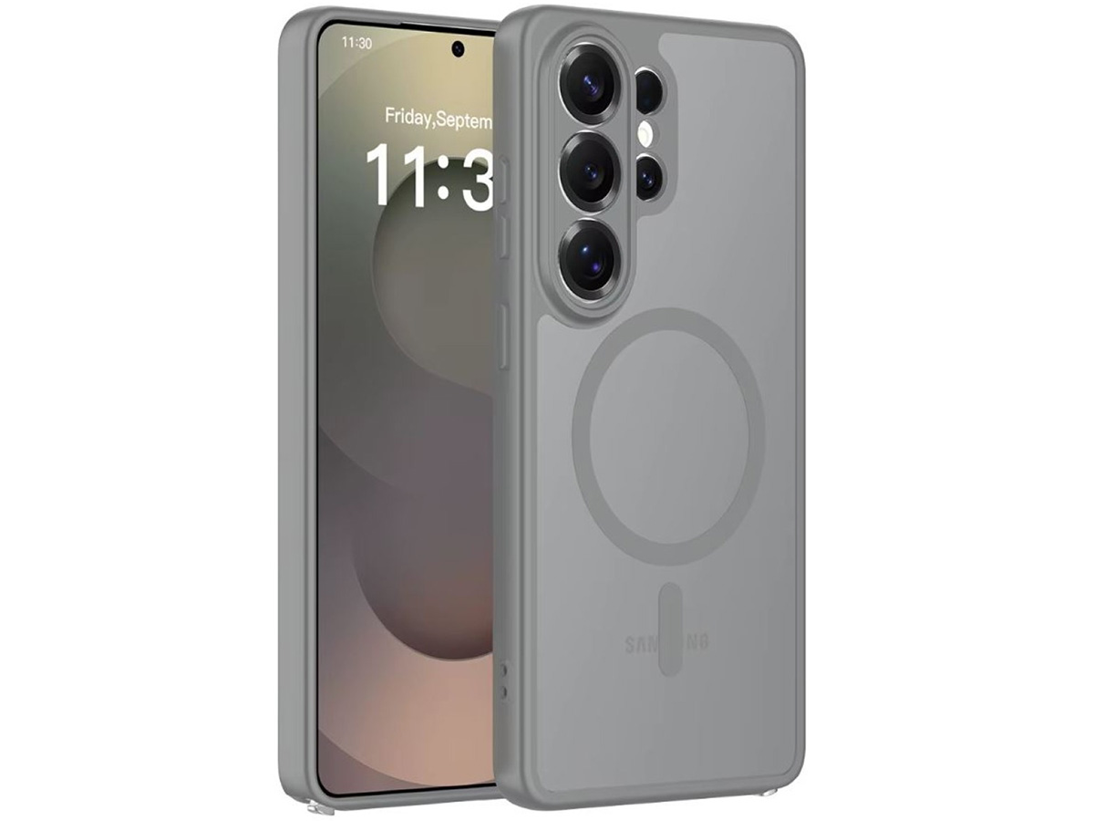 CaseMania Lens Protection Samsung Galaxy S26 Ultra Hoesje Frosted MagSafe Case Grijs