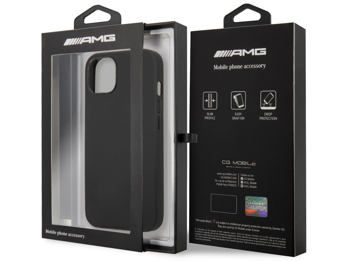 Dit Mercedes-AMG iPhone 13 Mini hoesje is onder officiële licentie gemaakt en biedt bescherming in de stijl van dit geliefde merk. De case is op de achterzijde bekleed met echt leer dat door middel van reliefdruk is voorzien van het AMG logo. De case is geheel uitgevoerd in zwart, en heeft daardoor een subtiele uitstraling.