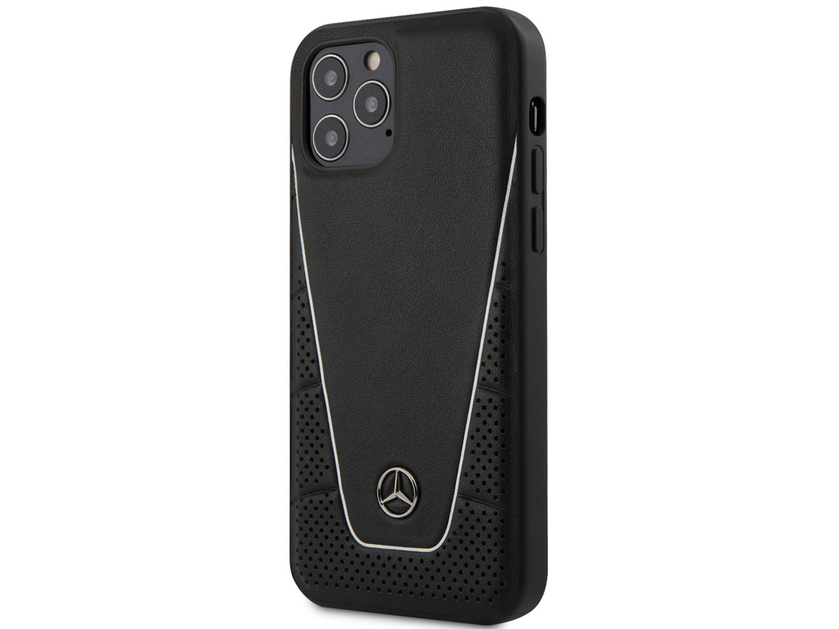 Dit Mercedes-Benz iPhone 12/12 Pro hoesje is onder officiële licentie gemaakt en biedt bescherming in sportieve stijl. De case komt uit de Dynamic Line en is volledig uitgevoerd in echt leer dat op gedetailleerde is bewerkt met reliefdruk, perforaties en bedrukking. Het resulteert in een sportief design dat aan de neus van een F1 auto doet denken, met uiteraard een zilverkleurige Mercedes ster voorop.