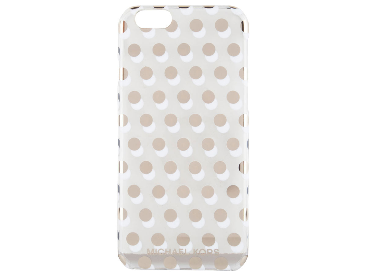 Dit originele Michael Kors iPhone 6/6s hoesje beschermt uw toestel in stijl. De case is helemaal doorzichtig, en voorzien van een hip stippen patroon in glanzend goud met wit.