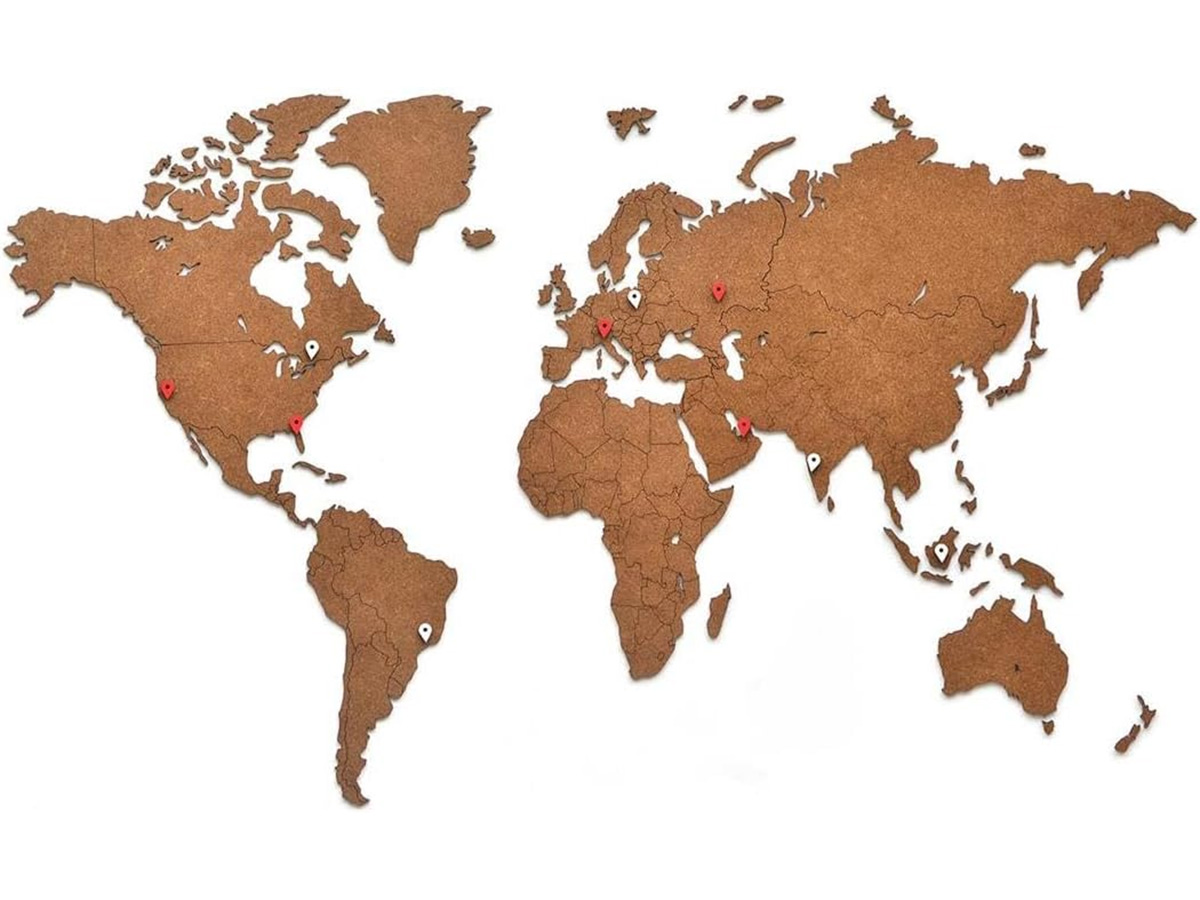 MiMi Innovations Houten Wereldkaart Bruin HDF - Large - Inclusief 48 pins