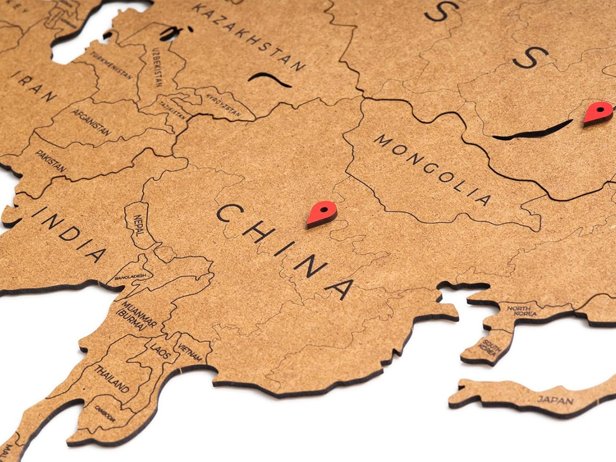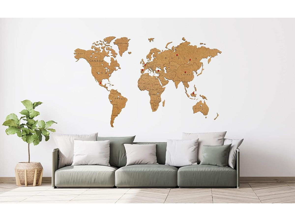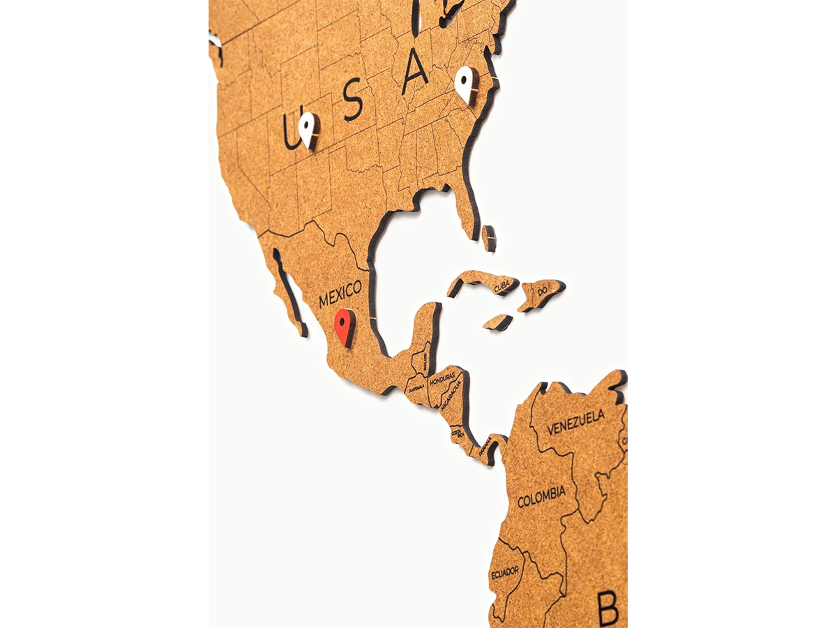 De houten wereldkaart van MiMi Innovations verfraait uw interieur of kantoor en maakt het bovendien mogelijk uw reizen, avonturen of vestigingen op stijlvolle wijze weer te geven!