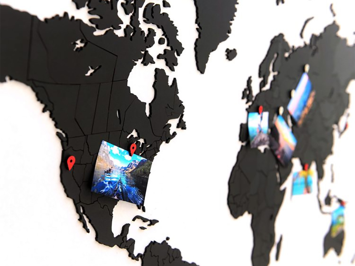De houten wereldkaart van MiMi Innovations verfraait uw interieur of kantoor en maakt het bovendien mogelijk uw reizen, avonturen of vestigingen op stijlvolle wijze weer te geven!