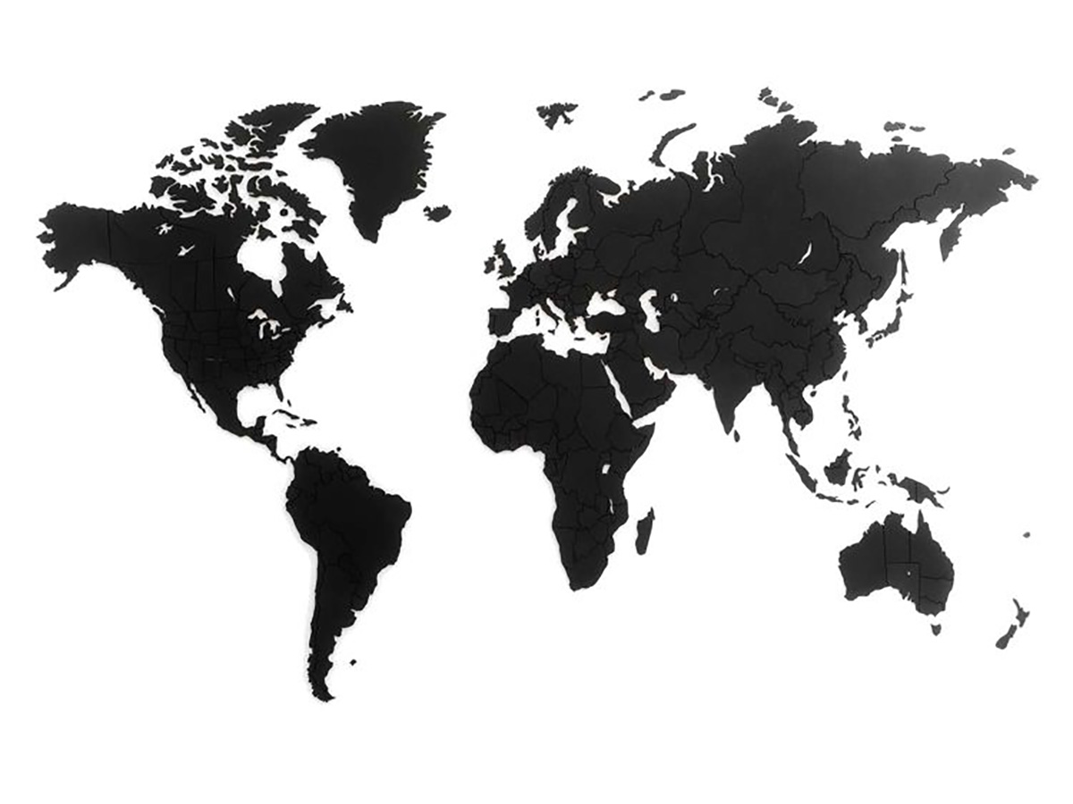 MiMi Innovations Houten Wereldkaart Puzzel Zwart HDF - Medium - Inclusief 96 pins