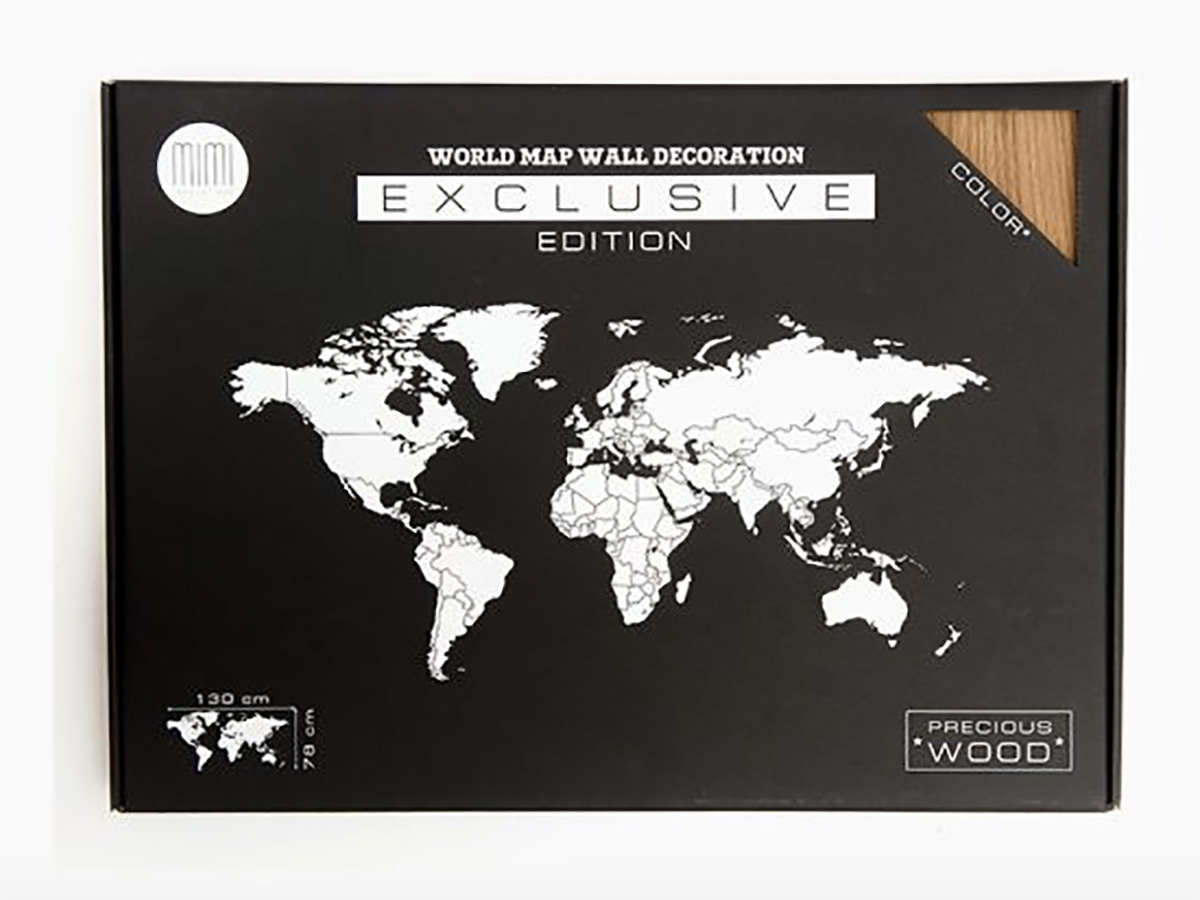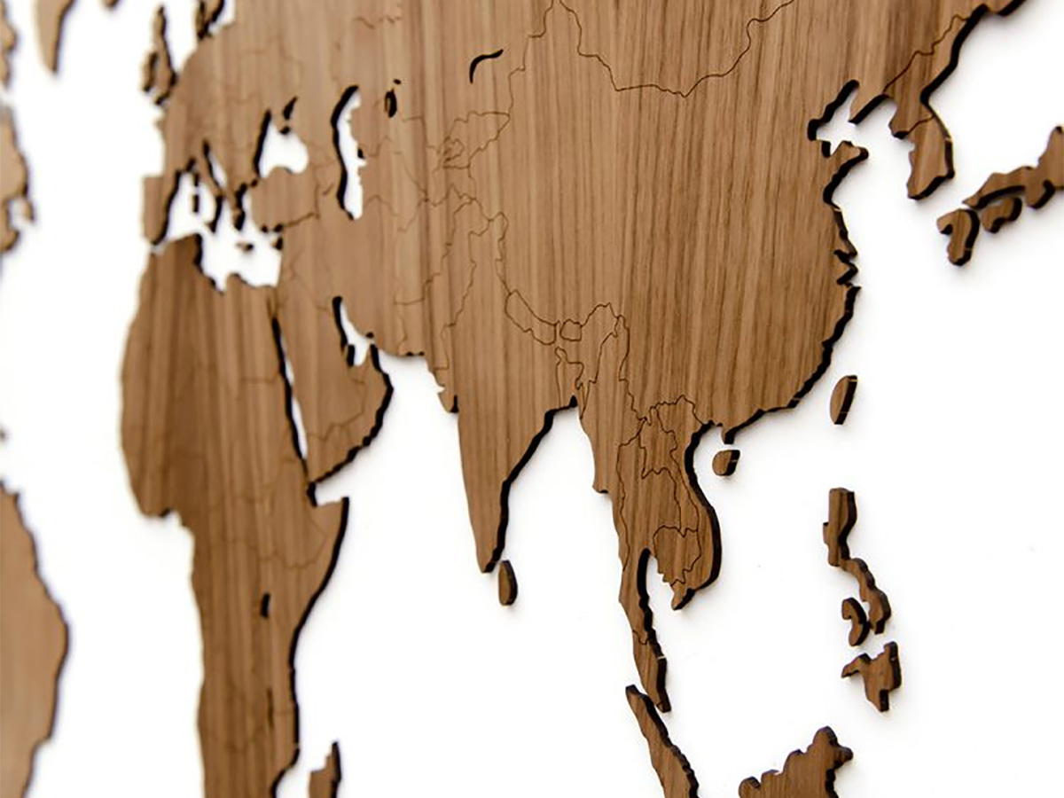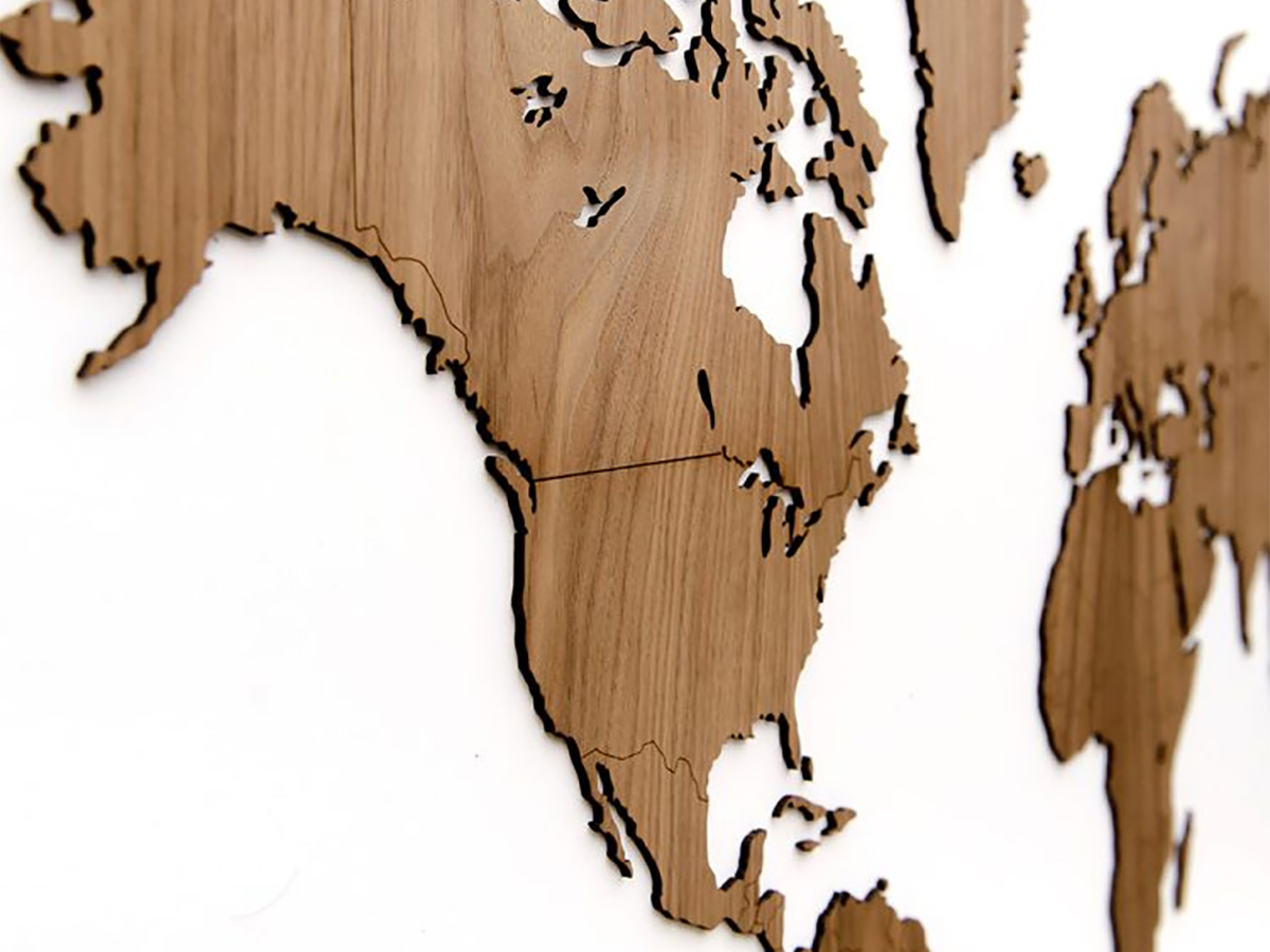 - Houten wereldkaart van HDF-hout met echt walnoot fineer