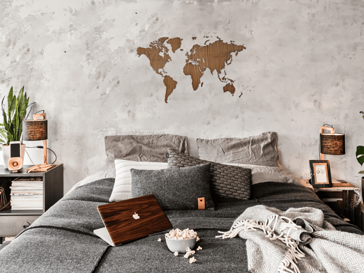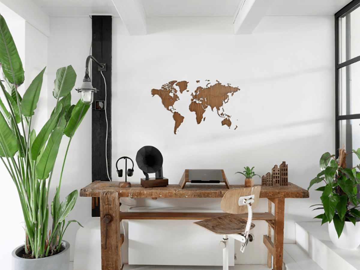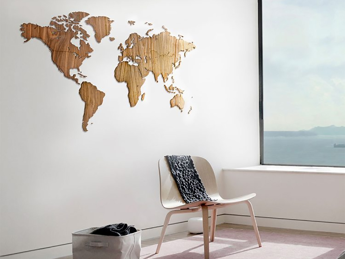 - Houten wereldkaart van HDF-hout met echt walnoot fineer