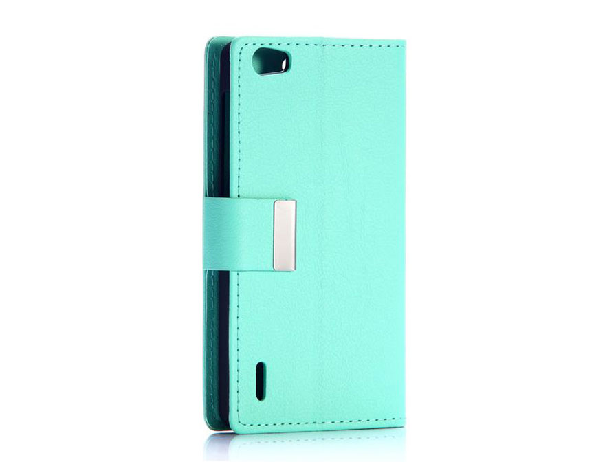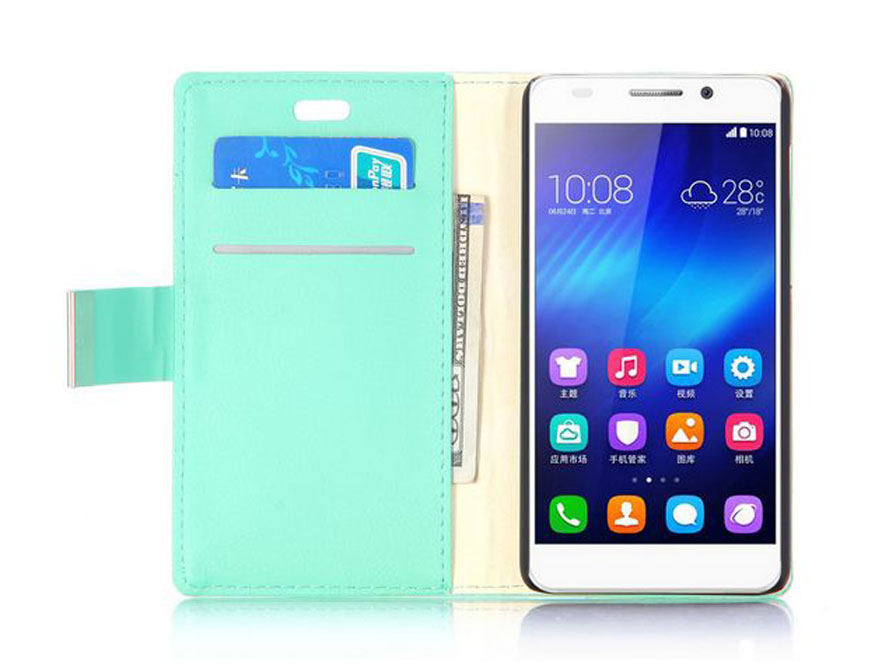 Dit fraaie Honor 6 hoesje is speciaal op maat gemaakt voor dit toestel en uitgevoerd in hip mintgroen. Het is een hoesje met prettige functionaliteiten: zo is er veel ruimte in het hoesje voor pasjes of visitekaartjes en is er een groter vakje waarin bonnetjes of papiergeld een plekje vindt. Bovendien kan het hoesje als standaard voor de Honor 6 dienen.