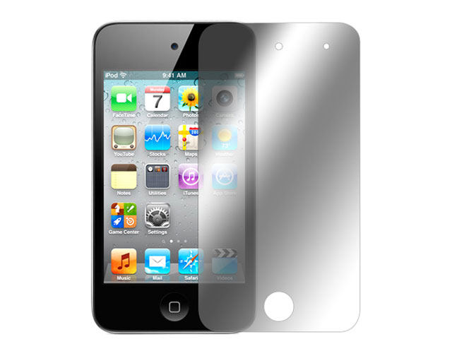 Deze mirror screenprotector die de gehele voorkant (inclusief zwarte delen) van de iPod Touch 4G beschermt, is van de beste 3-laags kwaliteit.