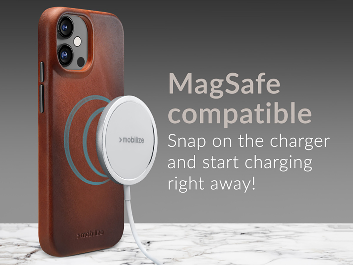 Deze leren iPhone 17 Air case van Mobilize is voorzien van een magnetische ring die compatible is met MagSafe. Hierdoor is het mogelijk om de case te combineren met het groeiende aanbod MagSafe opladers, houders en andere accessoires.