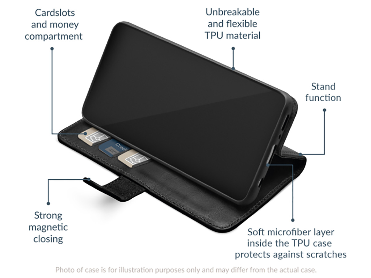 Het Samsung Galaxy S26 Ultra hoesje omsluit uw toestel volledig rondom, met een klepje over het scherm en een magneetsluiting om deze goed dicht te houden. De Mobilize Leather Wallet is voorzien van een houder voor de telefoon die van onbreekbaar, schokabsorberend TPU materiaal gemaakt is. Deze houder draagt in belangrijke mate bij aan de valbescherming én duurzaamheid van de case.