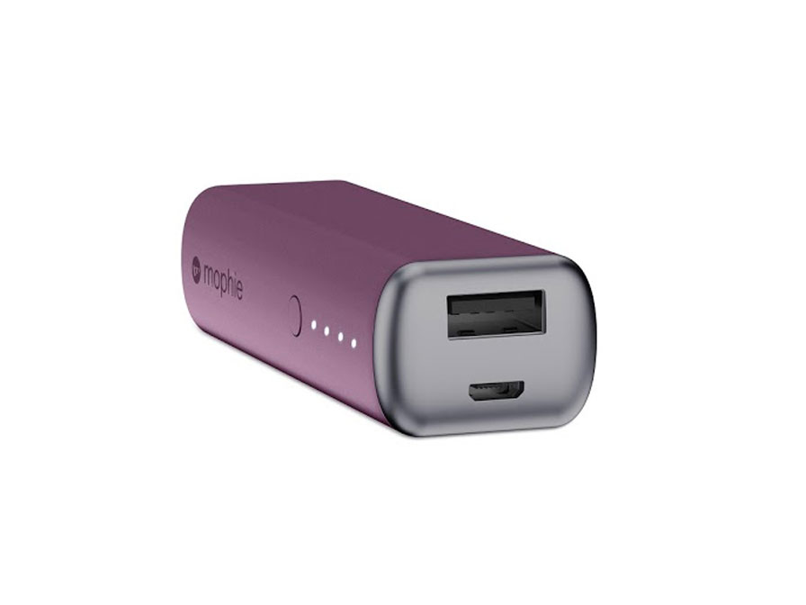 De mophie Power Reserve powerbank heeft 1 USB aansluiting met een output van 1A. LED lampjes tonen met een druk op de knop de resterende power.