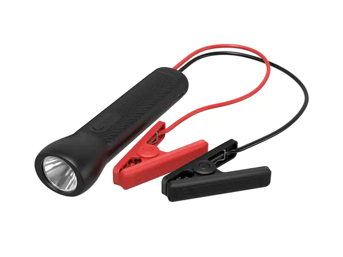 U leest het goed: deze zaklamp is in staat om uw auto te starten als u met en lege auto staat. De meegeleverde korte startkabels sluit u met één sterkker aan op de daarvoor bestemde aansluiting op de zaklamp en binnen enkele seconden kunt u starten. De zaklamp kan zowel compacte als grotere auto's met 12V accu jump-starten.
