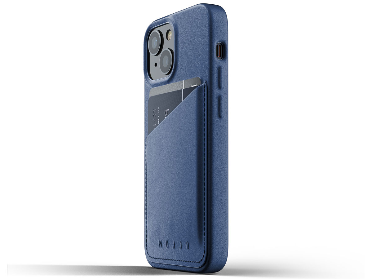 Mujjo Full Leather Wallet Case Monaco Blue - iPhone 13 Mini Hoesje Leer