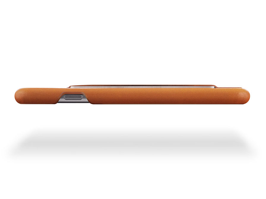 Het Mujjo iPhone 6/6s hoesje is uitgevoerd in prachtig leer in een heldere cognac-bruine kleur. In lijn met de filosofie van Mujjo straalt het eenvoudige ontwerp van de case op subtiele wijze vakmanschap uit. Dit blijkt ook uit details zoals de prachtige stiksels waarmee het vakje voor enkele pasjes achterop de cover is aangebracht. Dit vakje is in een hoek van exact 80 graden aangebracht, wat voor een unieke, elegante uitstraling zorgt. Het zorgt er bovendien voor dat de pasjes er te allen tijde goed in blijven zitten.