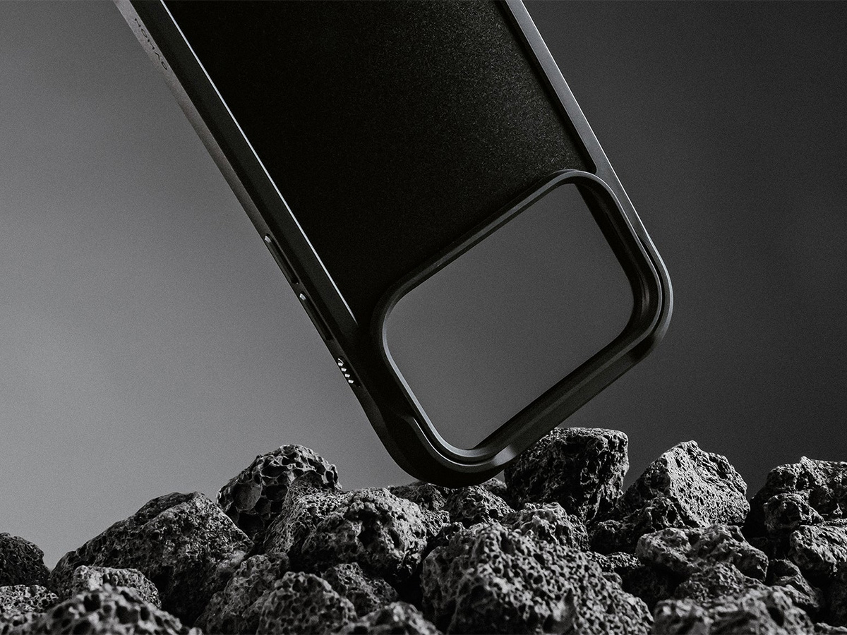 De Nomad Rugged case is zo ontworpen dat hij het hoogteverschil van de camera van de iPhone 17 Pro Max opheft. Hierdoor ligt de case vlak op tafel en behoort wiebelen tot het verleden.