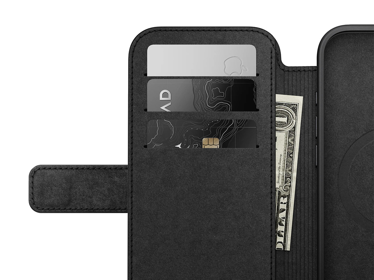 Het iPhone 17 hoesje van Nomad biedt niet alleen plaats aan uw iPhone, maar heeft óók 3 vakjes voor passen én een steekvakje voor briefgeld of bonnetjes. Hiermee is dit hoesje een serieus alternatief voor uw traditionele portemonnee.