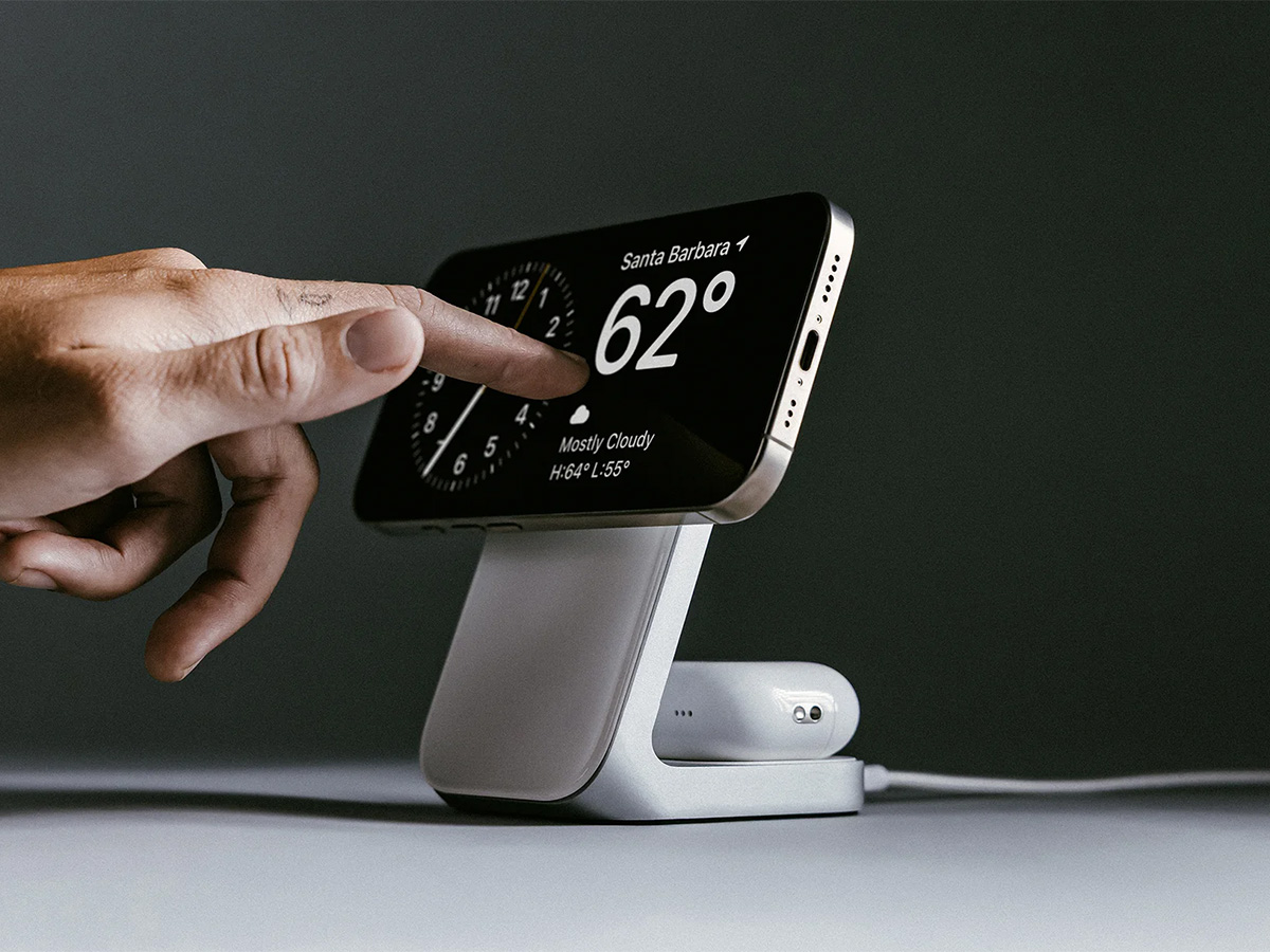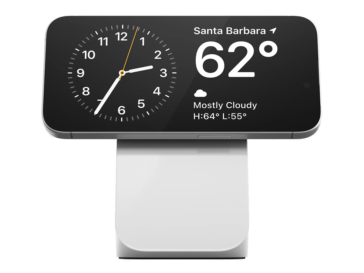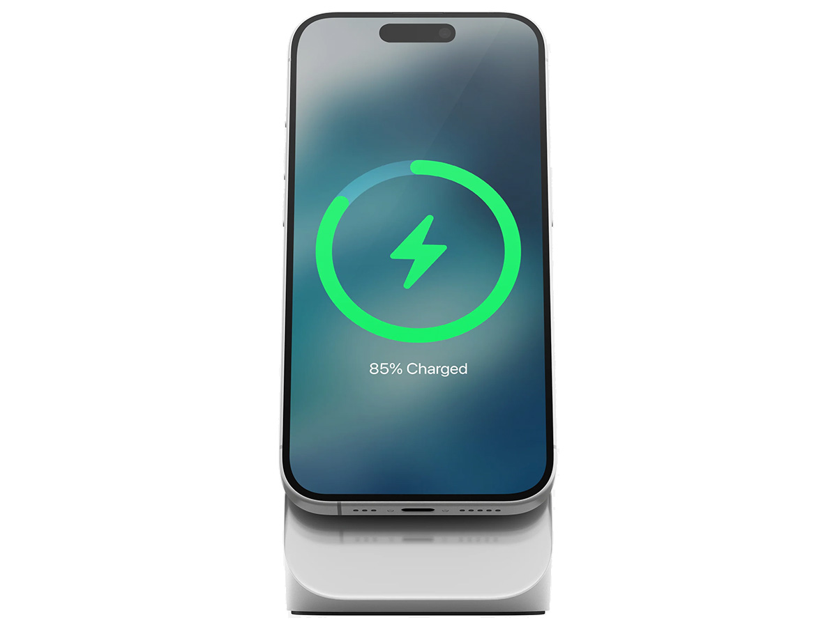 De Nomad Stand One is ontworpen voor smartphones met MagSafe- of Qi2-ondersteuning. Hierdoor profiteert u van een perfecte magnetische bevestiging en optimale laadsnelheid, terwijl uw toestel overzichtelijk en stijlvol gepresenteerd blijft tijdens het opladen.